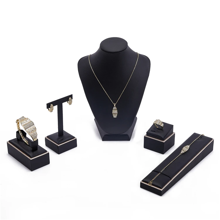 Product Name: 2021 New Fashion Simple Full Drill Gold Plated Elegant New Design Necklace Earrings Bracelet Ring Jewelry Set