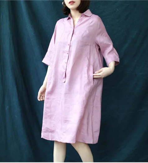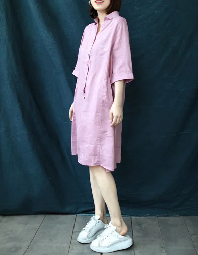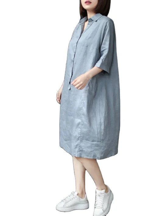 Product Name: 2021 New Women Summer Casual Loose Linen V-neck Shirt Dress