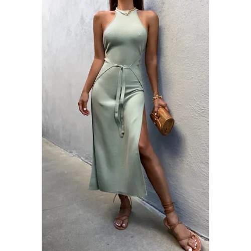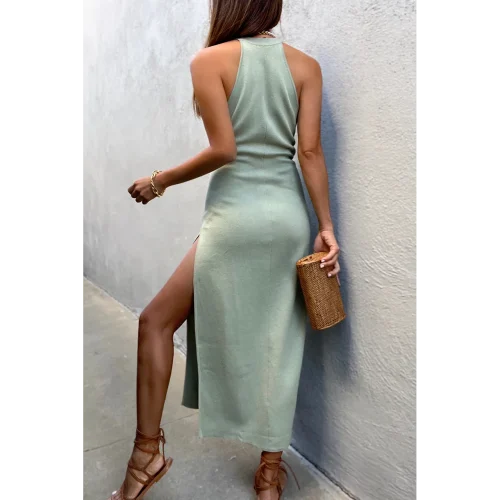 Product Name: 2021 Solid Color Summer Round Collar Sleeveless Ribbed Knit Black Women Casual Dress