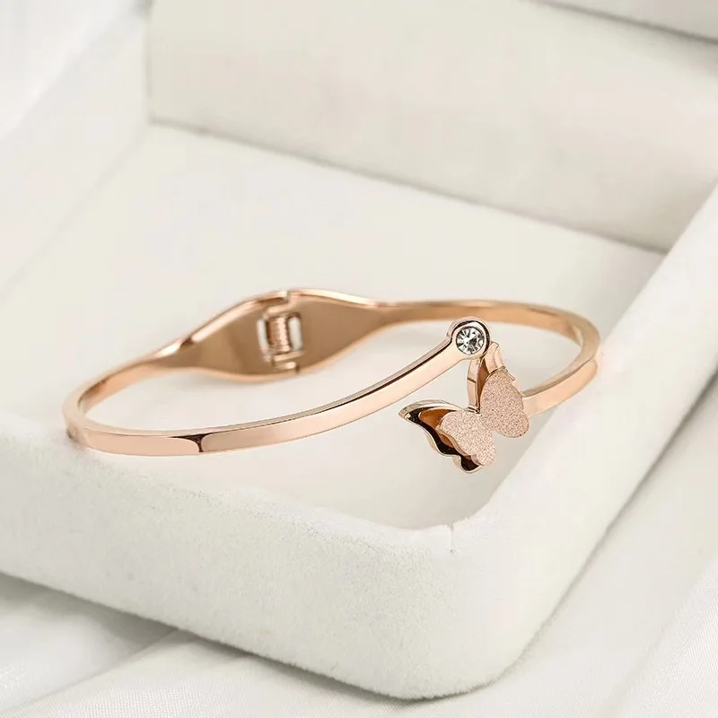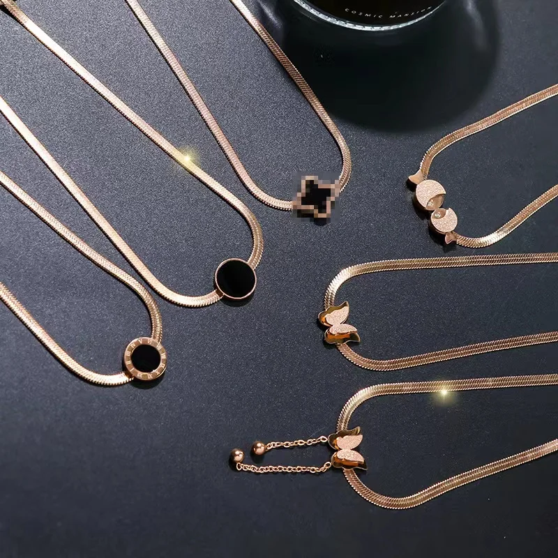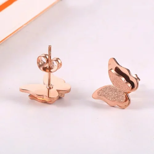 2022 Jewelry High Quality Butterfly Flower Rose Gold Stainless Steel Earring Necklace Bracelet Jewelry Set