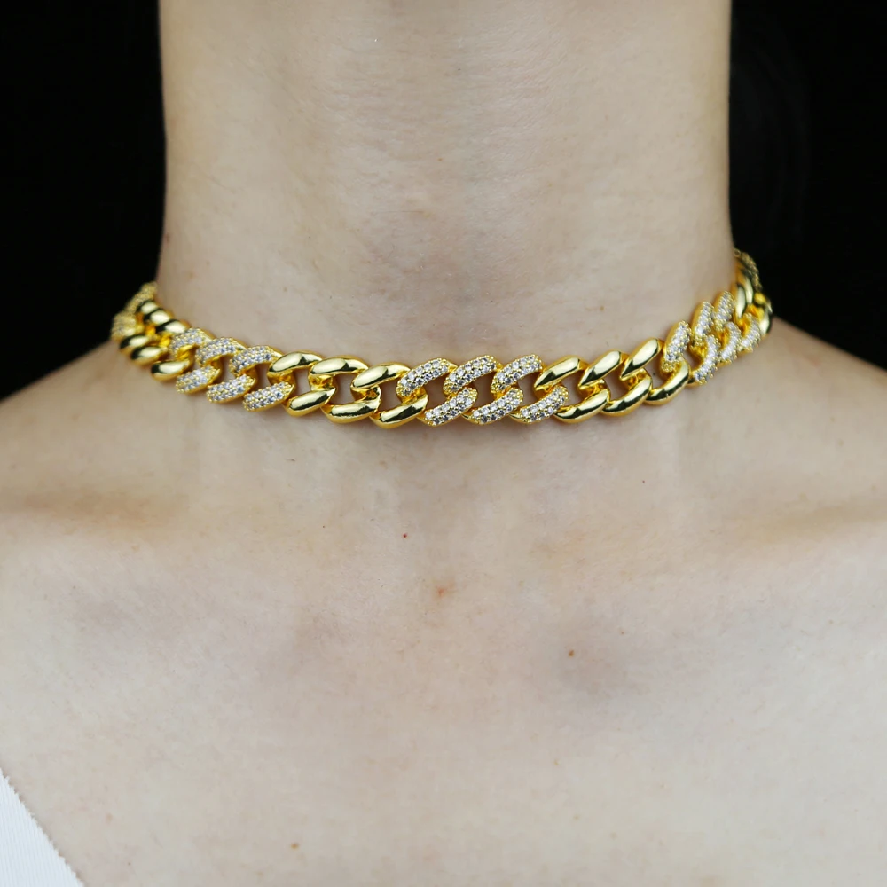 Product Name: 2022 New Arrived Sparking Bling Women Jewelry 5A Cubic Zirconia Cz Charm Cuban Chain Necklace