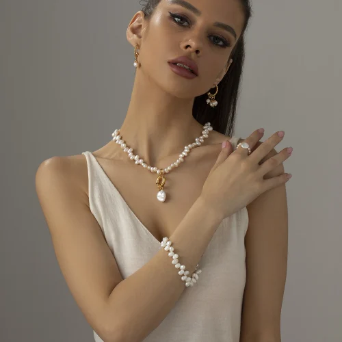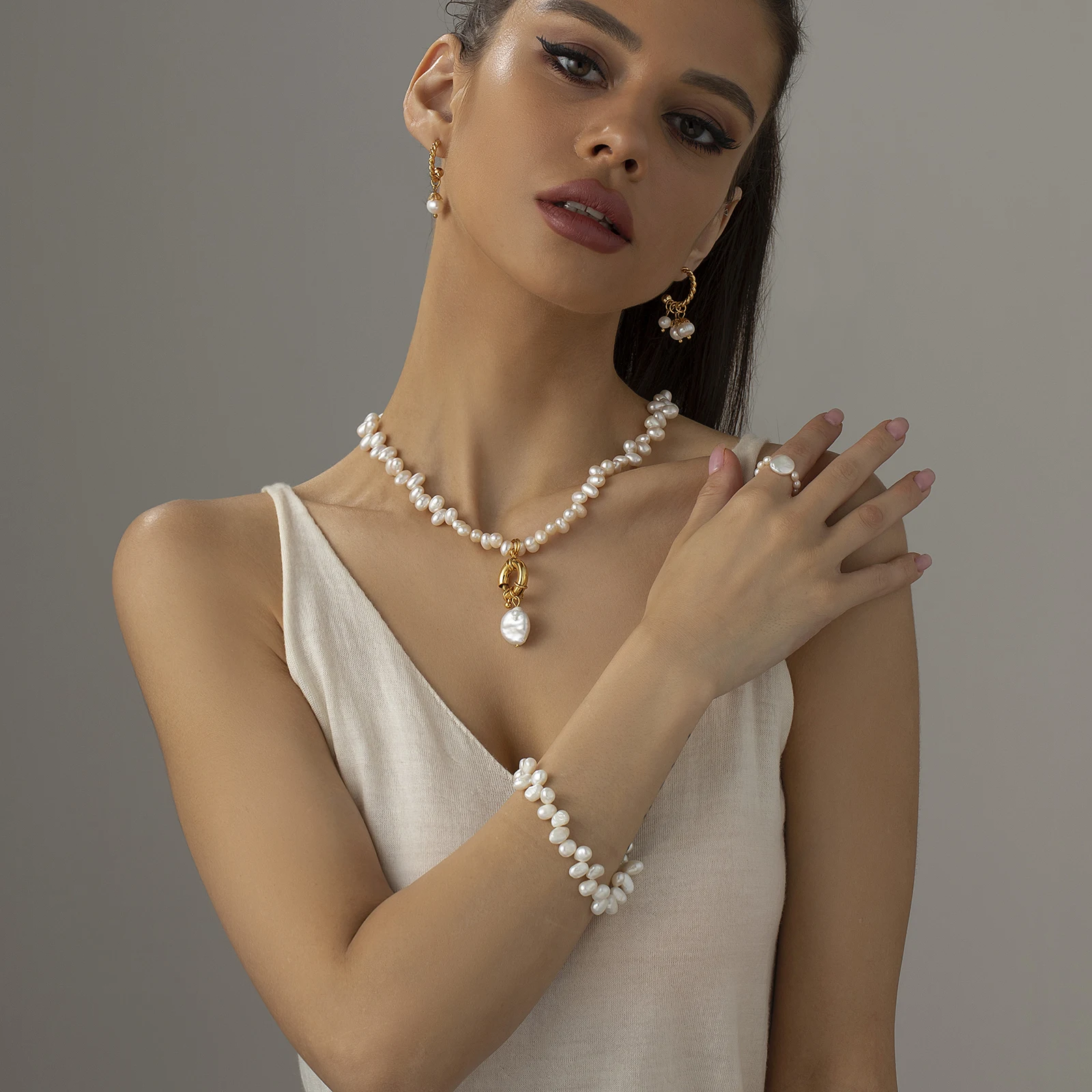Product Name: 2022 New Fashion Gold Plated Jewelry Sets Women Gifts Wedding Pearl Necklaces Bracelets Rings Earrings Party Banquet Luxury Sets