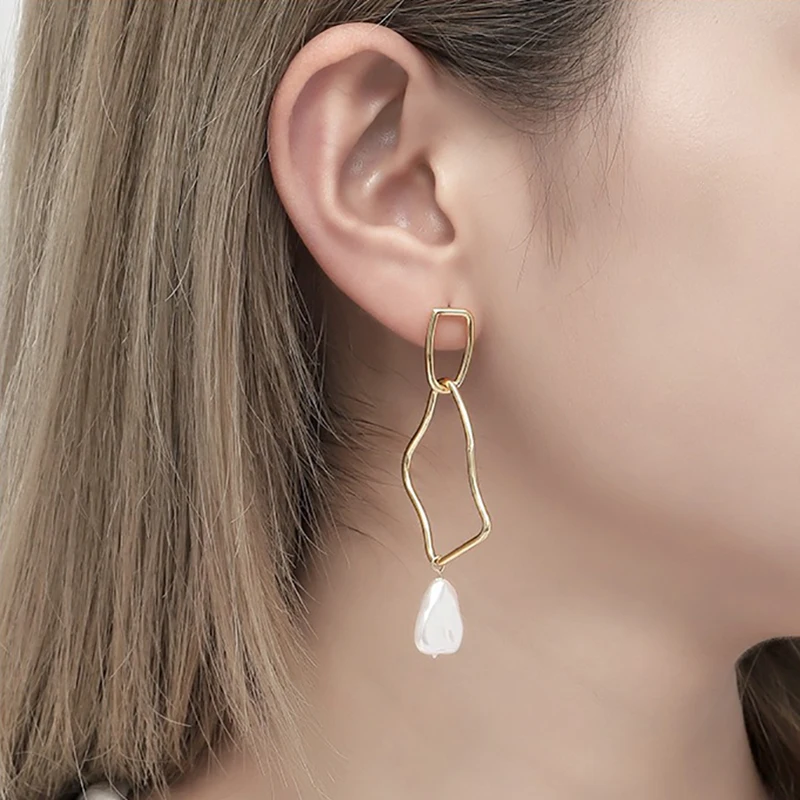 2022 Trend Drop Design Charm Irregular Dangle Pearl 18k Gold Plated Earrings for Women