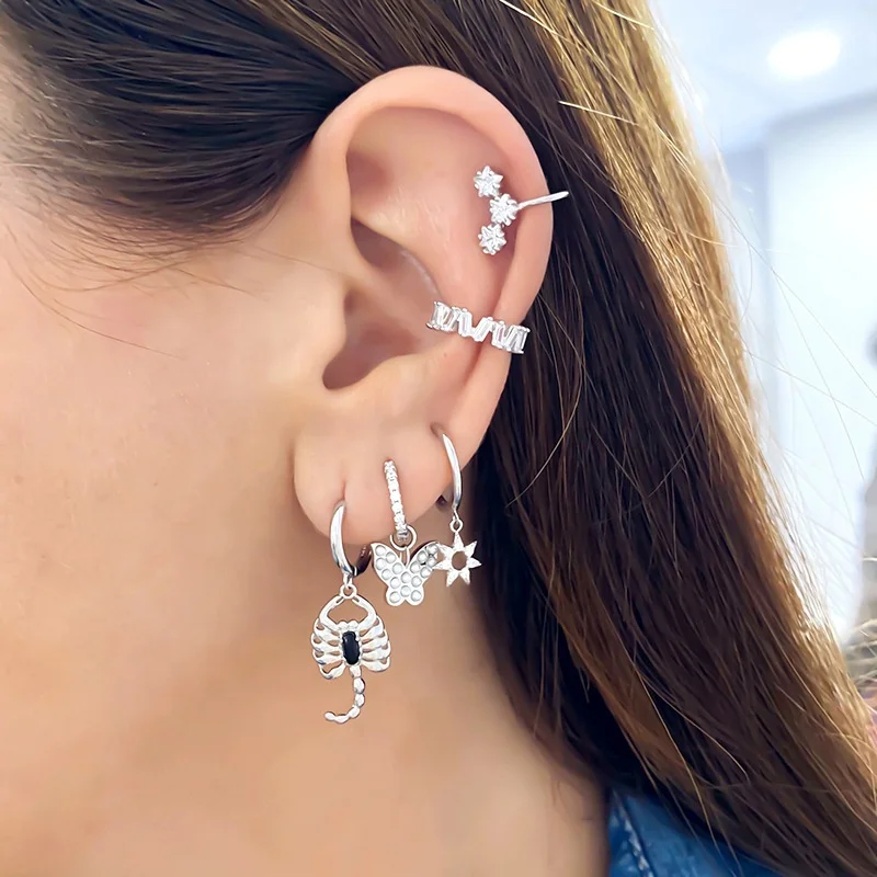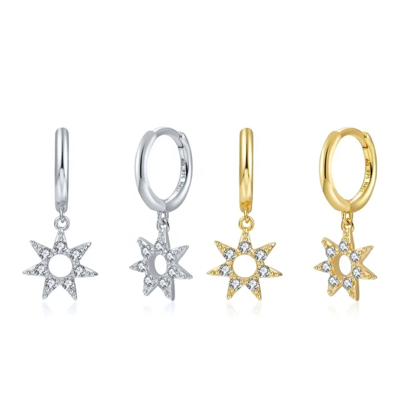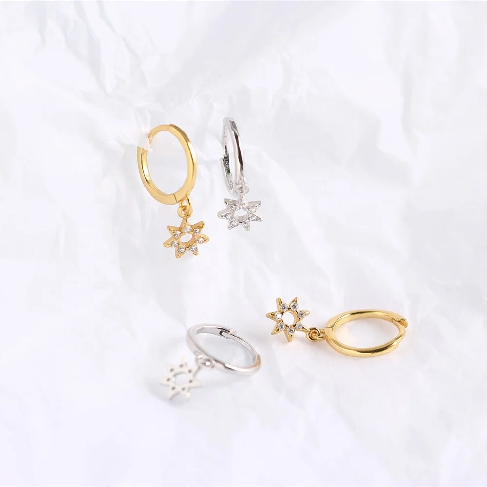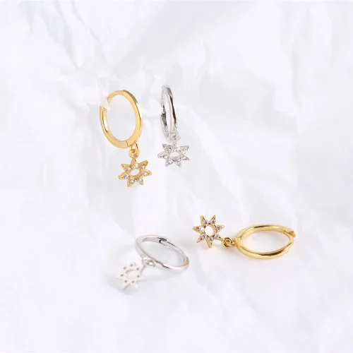 Product Name: 2022 Trend NEW Simple 925 Sterling Silver 18k Gold Plated Sunflower Pave Setting Cz huggies Dangle Hoop Earrings for Women
