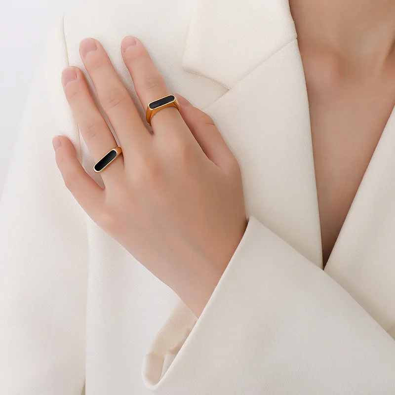 Product Name: 2023 French Chic Fashion Rings for Women Rose Gold Plated Geometric Enamel Real U Stainless Steel Jewelry