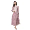Product Name: 2023 High Quality Women Lady Elegant Dresses O-Neck Floral Print Long Sleeve Ruffled Casual Dresses