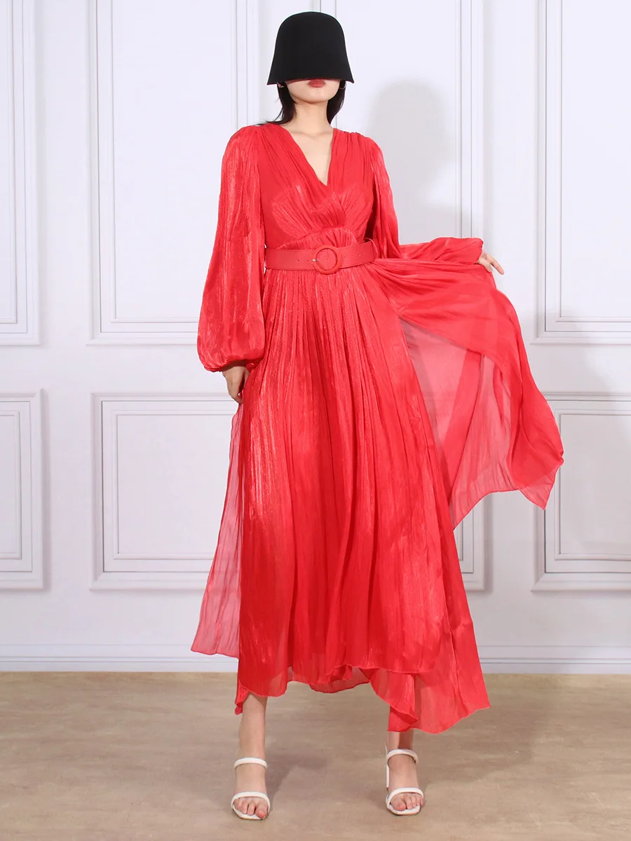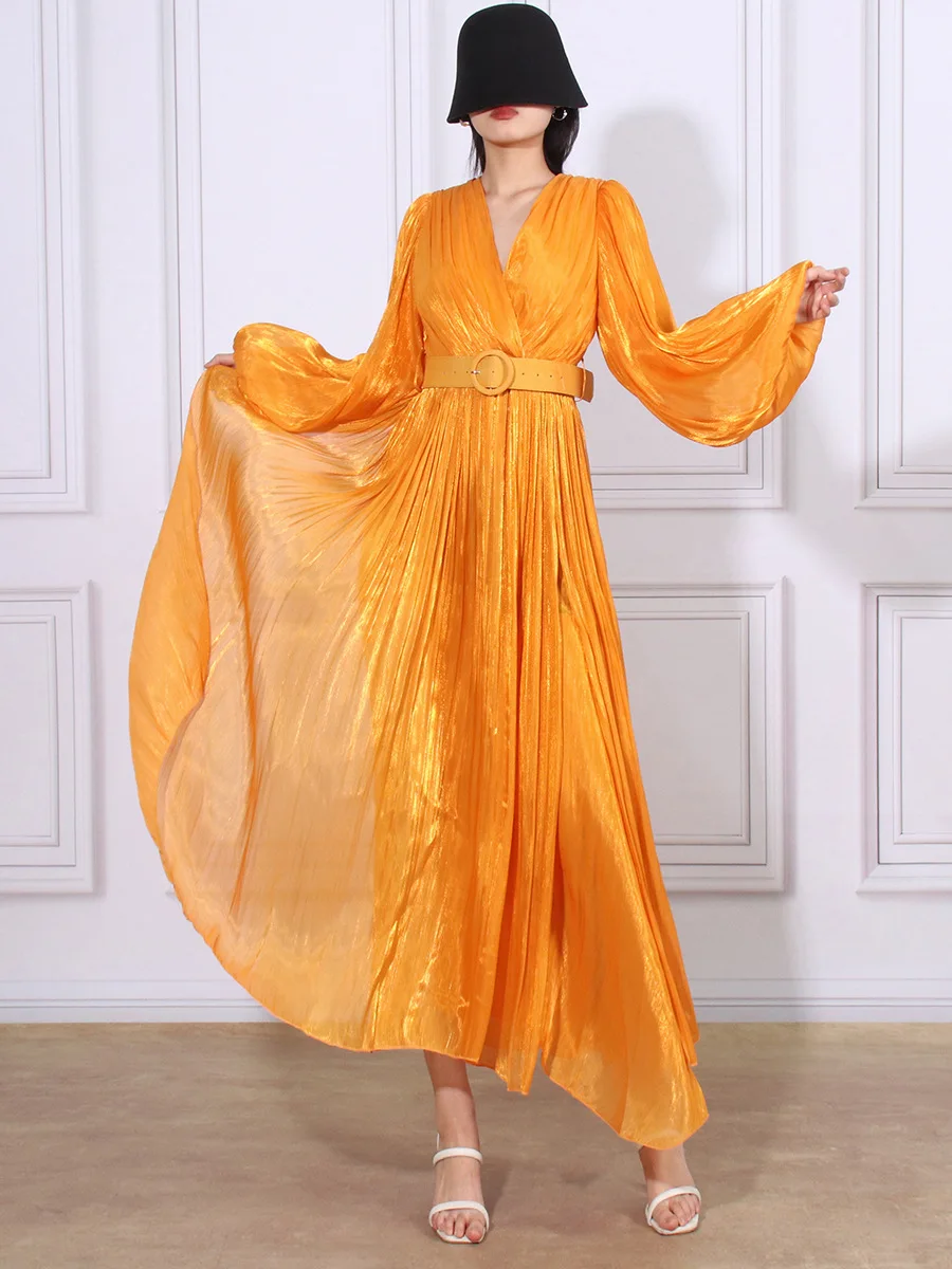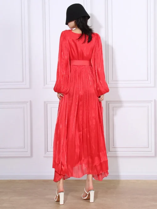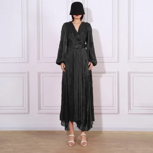 2023 New Simple Temperament Spilt Design Dress DesignSense Long Sleeve Slimming Maxi Elegant Women Dress