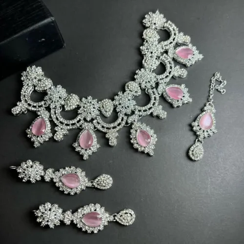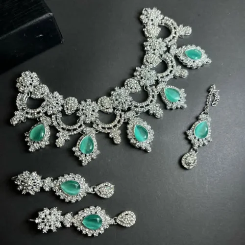 Product Name: 2024 Jewelry Sets Women American Diamond Style Choker Necklaces Earrings Mang Tikka Indian Wedding Bridal Jewelry Sets