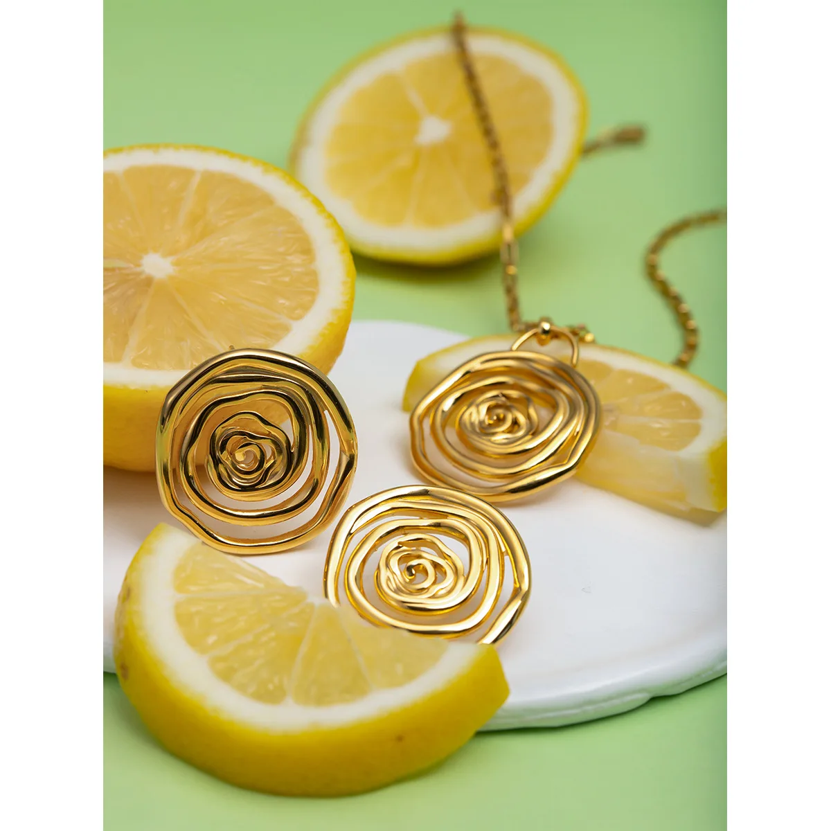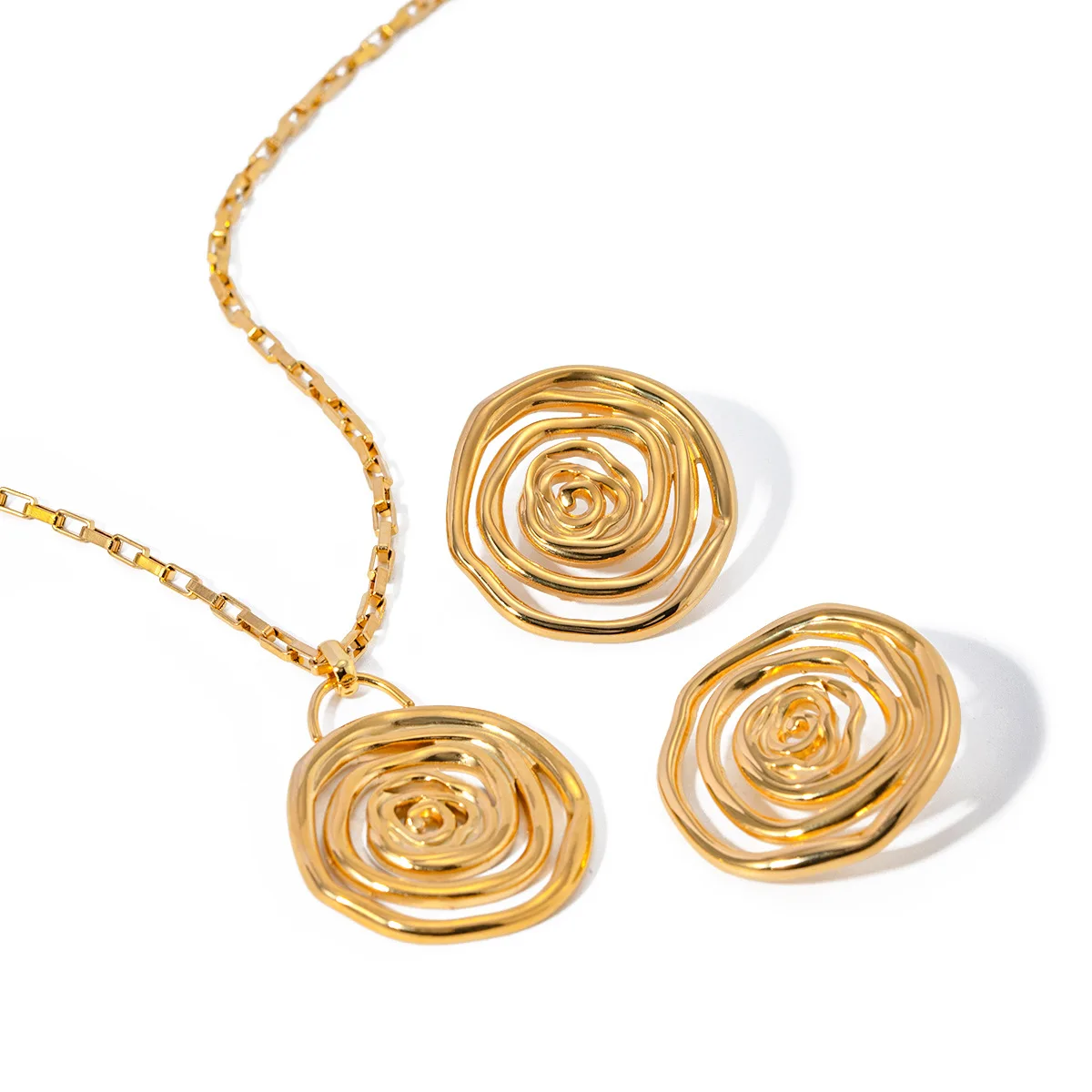 Product Name: 2024 Luxe Party Jewelry Statement 18k Gold Plated Swirl Charm Stud Earrings Necklace Jewelry Set for Women