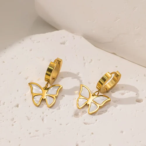 Product Name: 2024 Luxury Charm Women New Fashion 18K Gold Plated White Shell Stainless Steel Earrings Bracelet Necklace Butterfly Jewelry Set