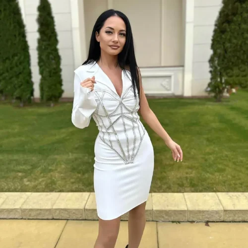 2024 Middle Eastern High-End Women’s Casual Chiffon Dress Bandage Skirt Solid Diamond Pattern One-Shoulder Long-Sleeved Dress