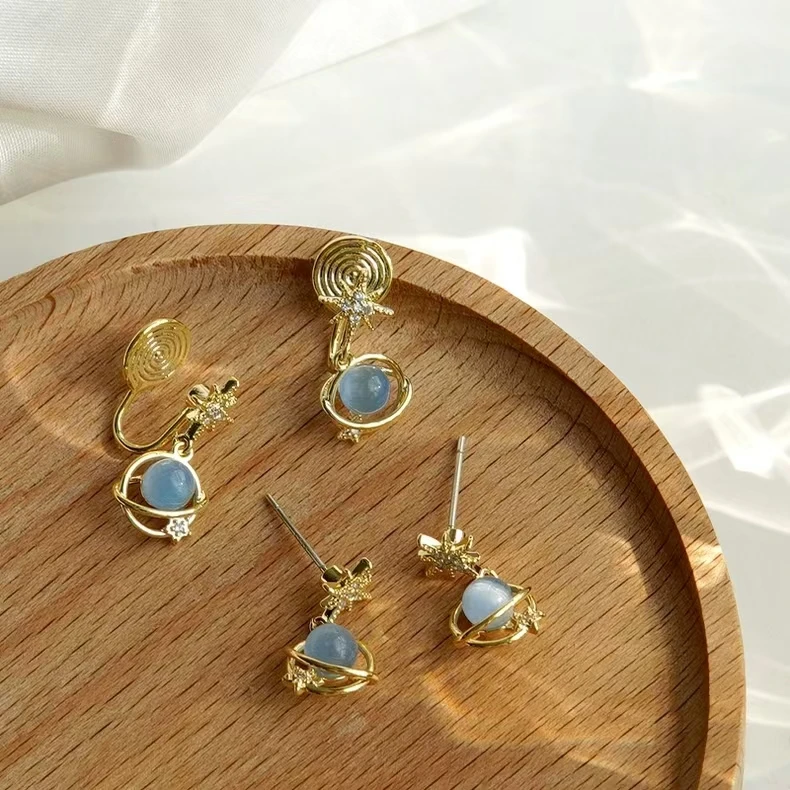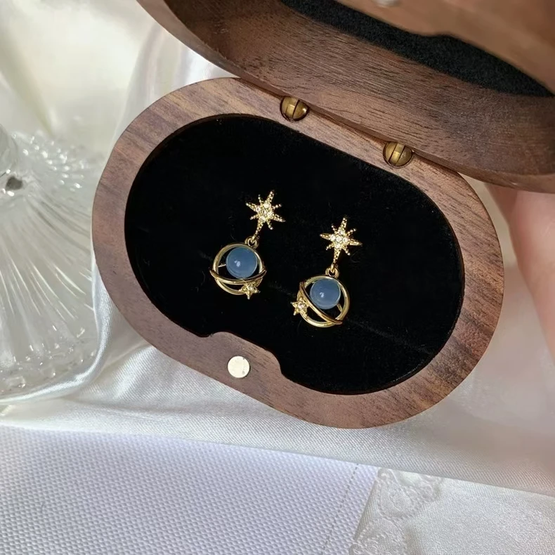 2024 New 925 Silver Material High-end Design Gold Star Blue Zircon Earrings