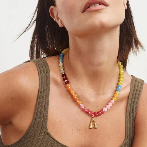 Product Name: 2024 Newest Initial Letter Necklaces Handmade Colorful Beaded Gemstone Choker 14K Gold Bubble Letter Pendant Necklace Jewelry