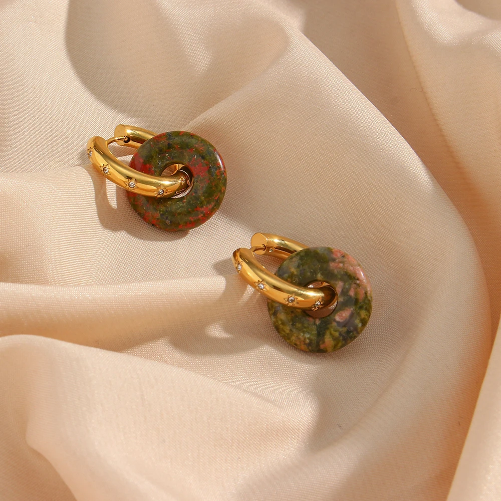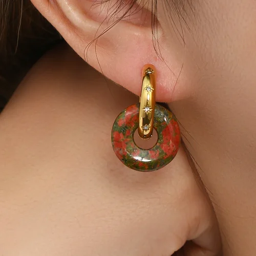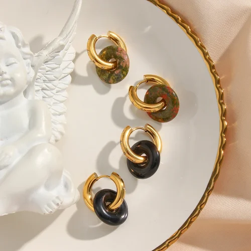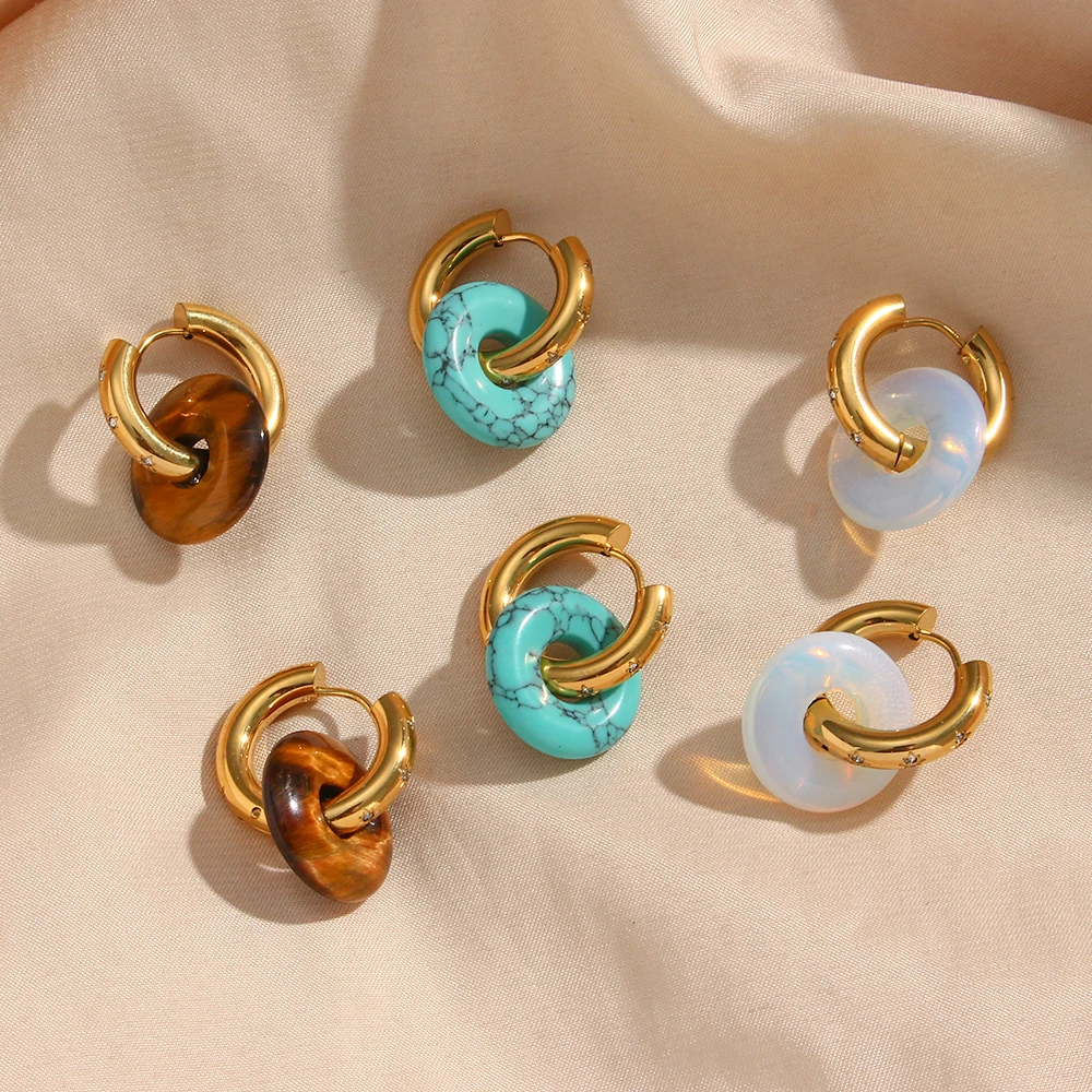 Product Name: 2024 Spring Fashion 18K Gold Plated Stainless Steel Zircon Hoop Earring Mini Natural Stone Earrings