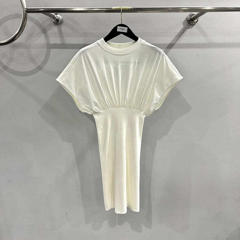 2024 Spring Summer Temperament Commuting With Waist Cinched and Skinny Sleeveless Mid Length Skirt, Rice White Dress