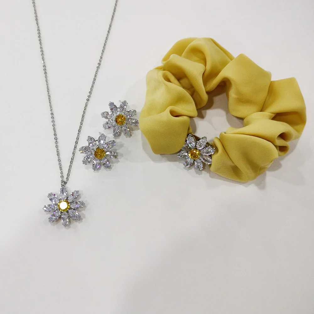 Product Name: 2024 Trendy Wedding Jewelry Sets for Women Rhinestone Necklace Earrings Scrunchies Hair Accessories for Party & Bridal Gifts