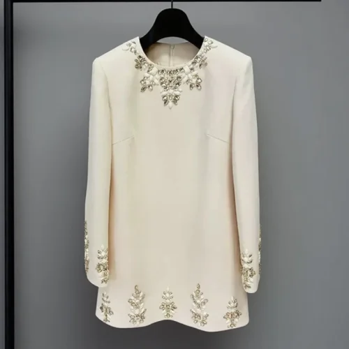 Product Name: 2025 Fall New Star Show High Quality Elegant Short Women’s Dresses Casual Midi Evening Long Sleeve Hand Nailed Beaded Diamond