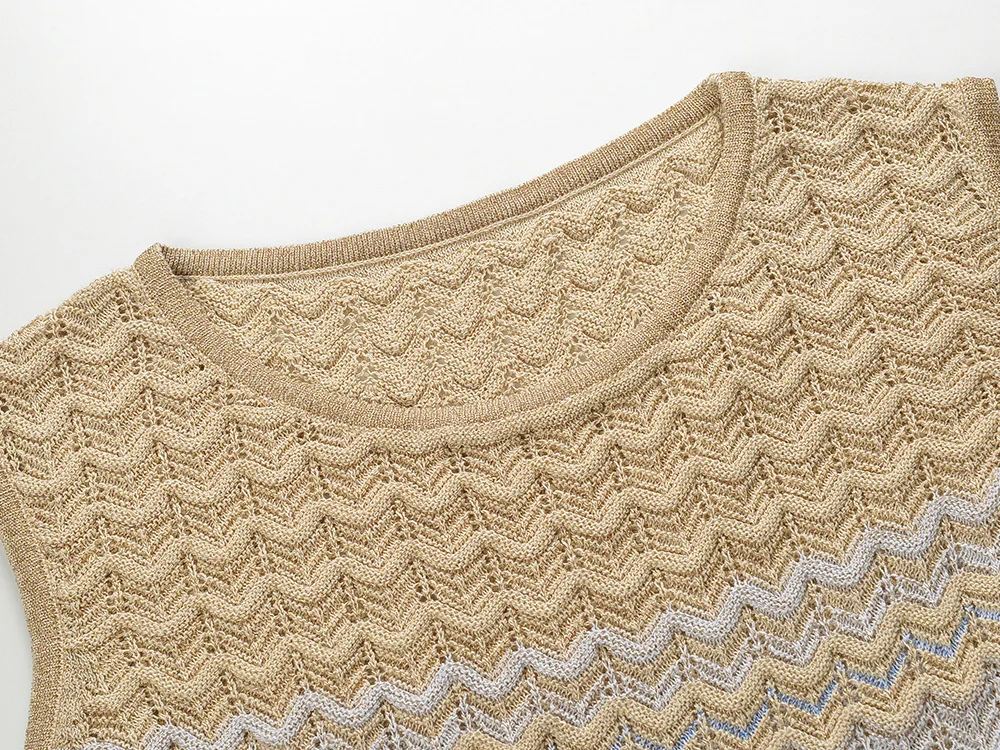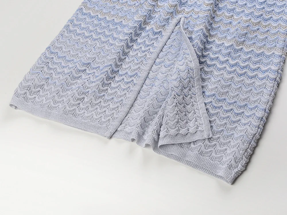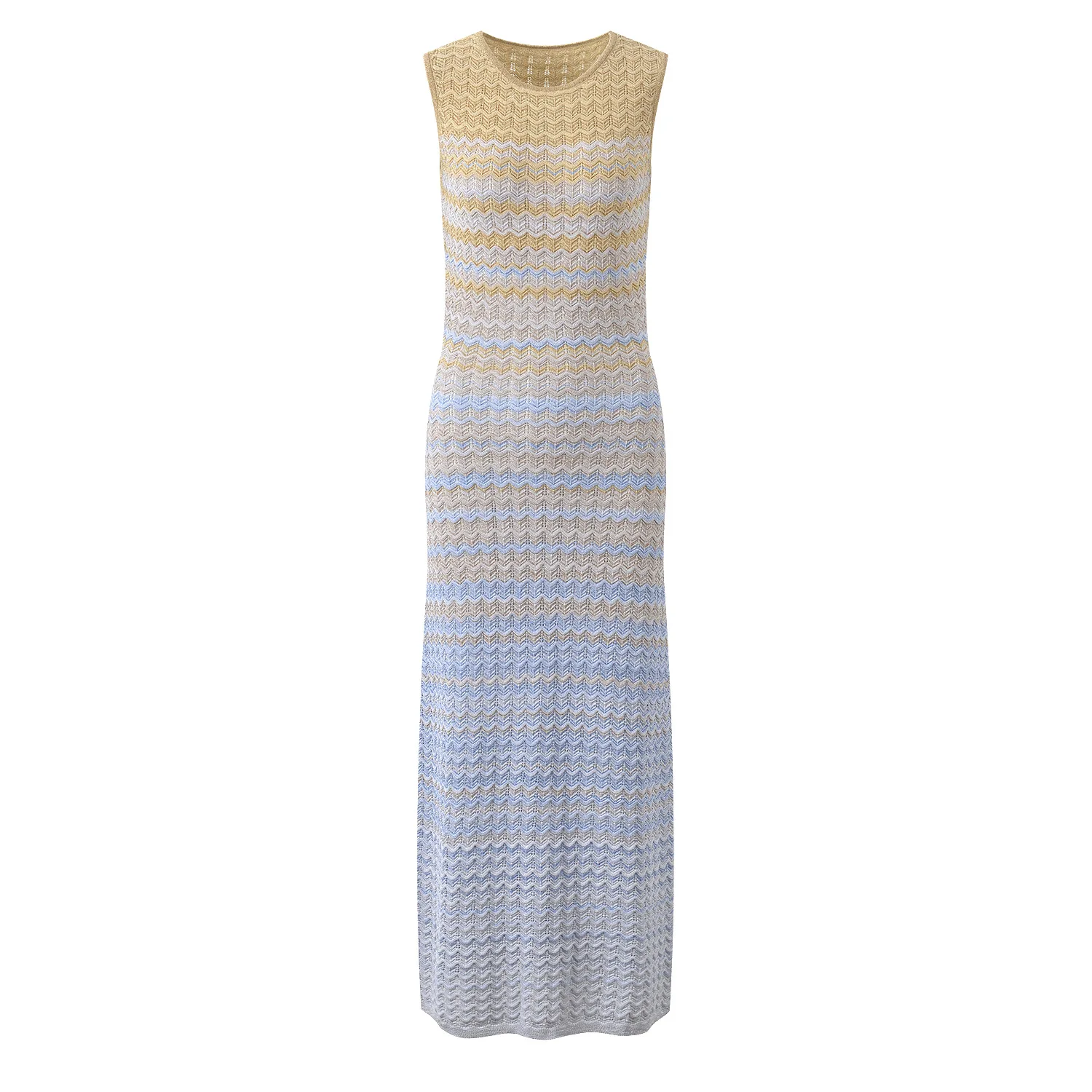 2025 French Sweet Summer Elegant Stretch Slim Round Neck Sleeveless Women’s Dress New Gradient Color Wave Striped Long Dresses
