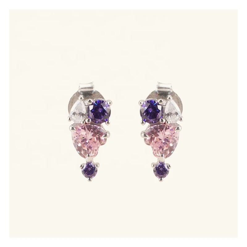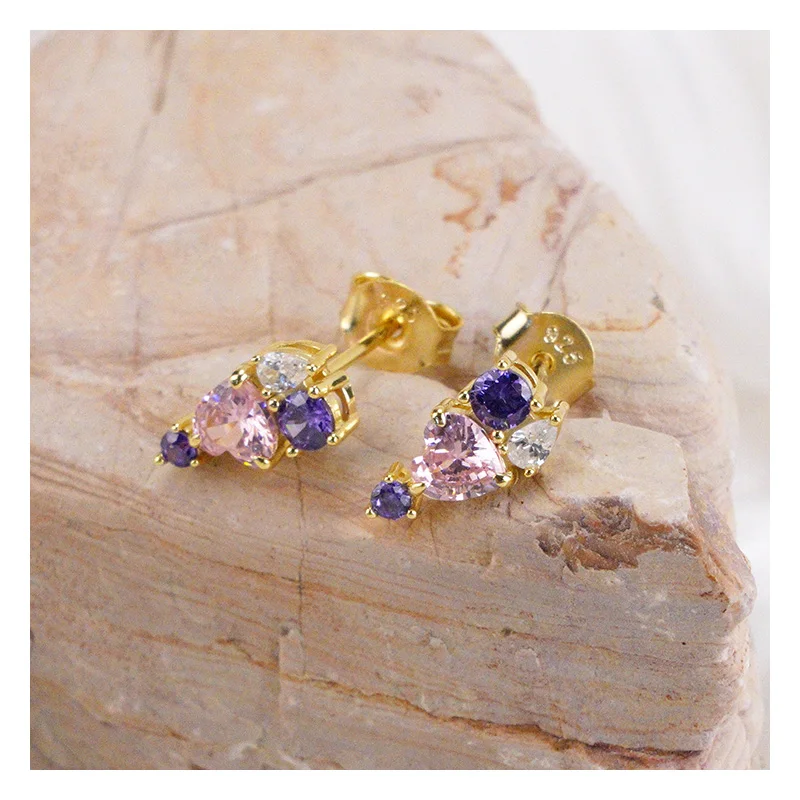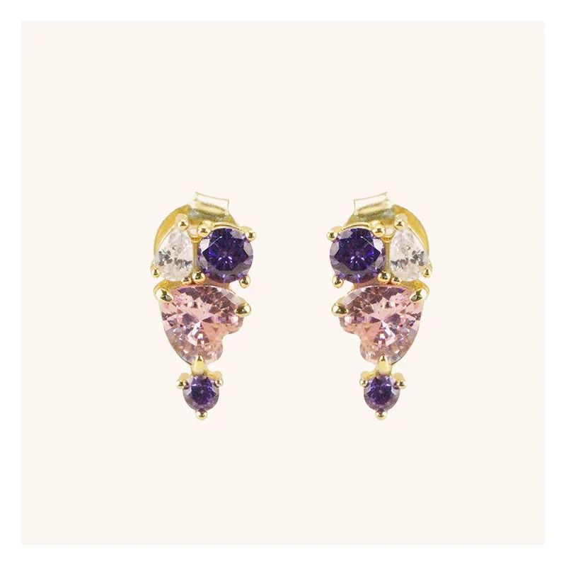 Product Name: 2025 Summer New 925 Silver Heart Stud Earrings Colorful Zircon Diamond Drop Stud Earrings for Women