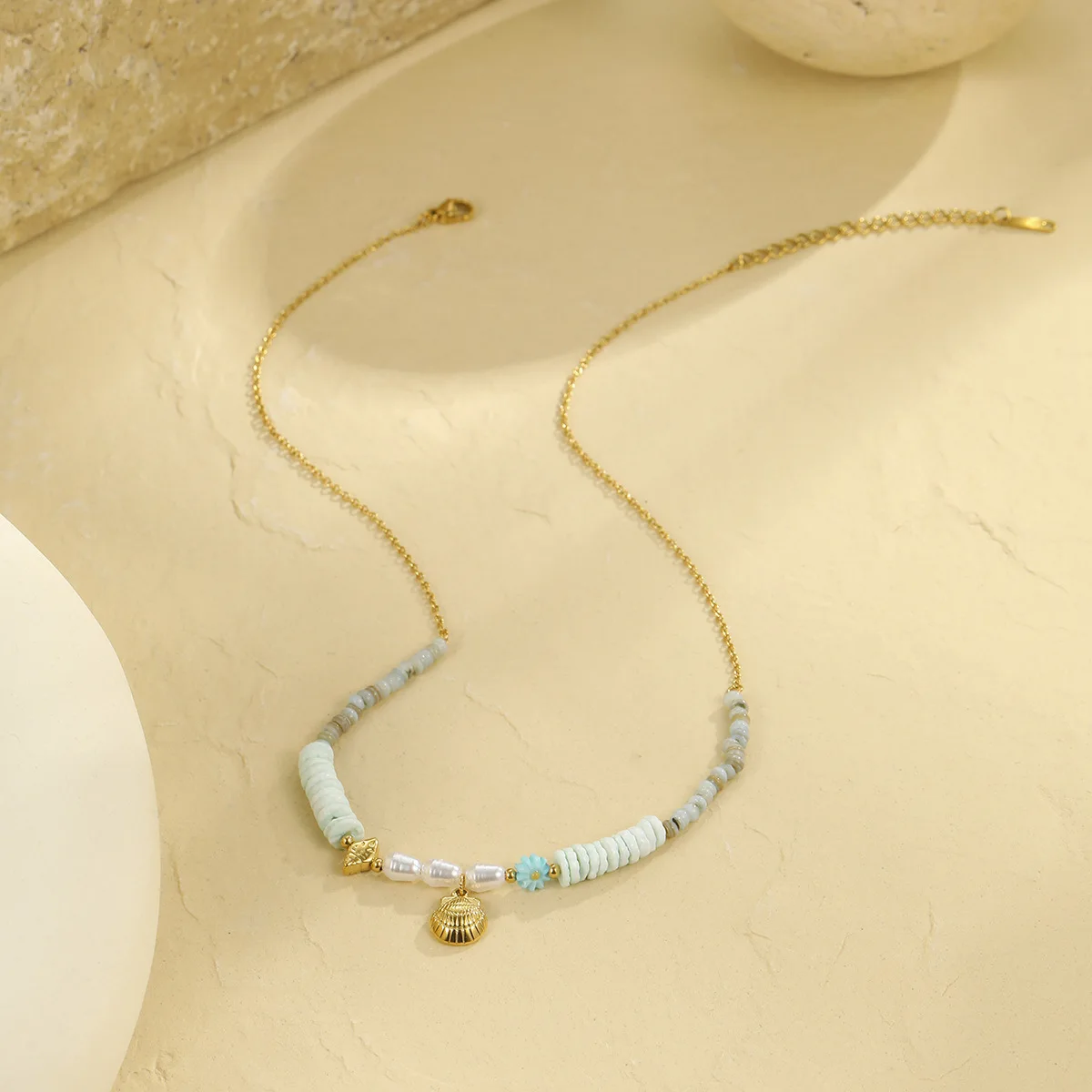 Product Name: 2025 Summer New INS 18K Stainless Steel Pearl Necklace Hypoallergenic No Fade Jewelry with Ocean Wind Shell