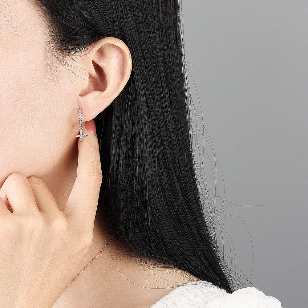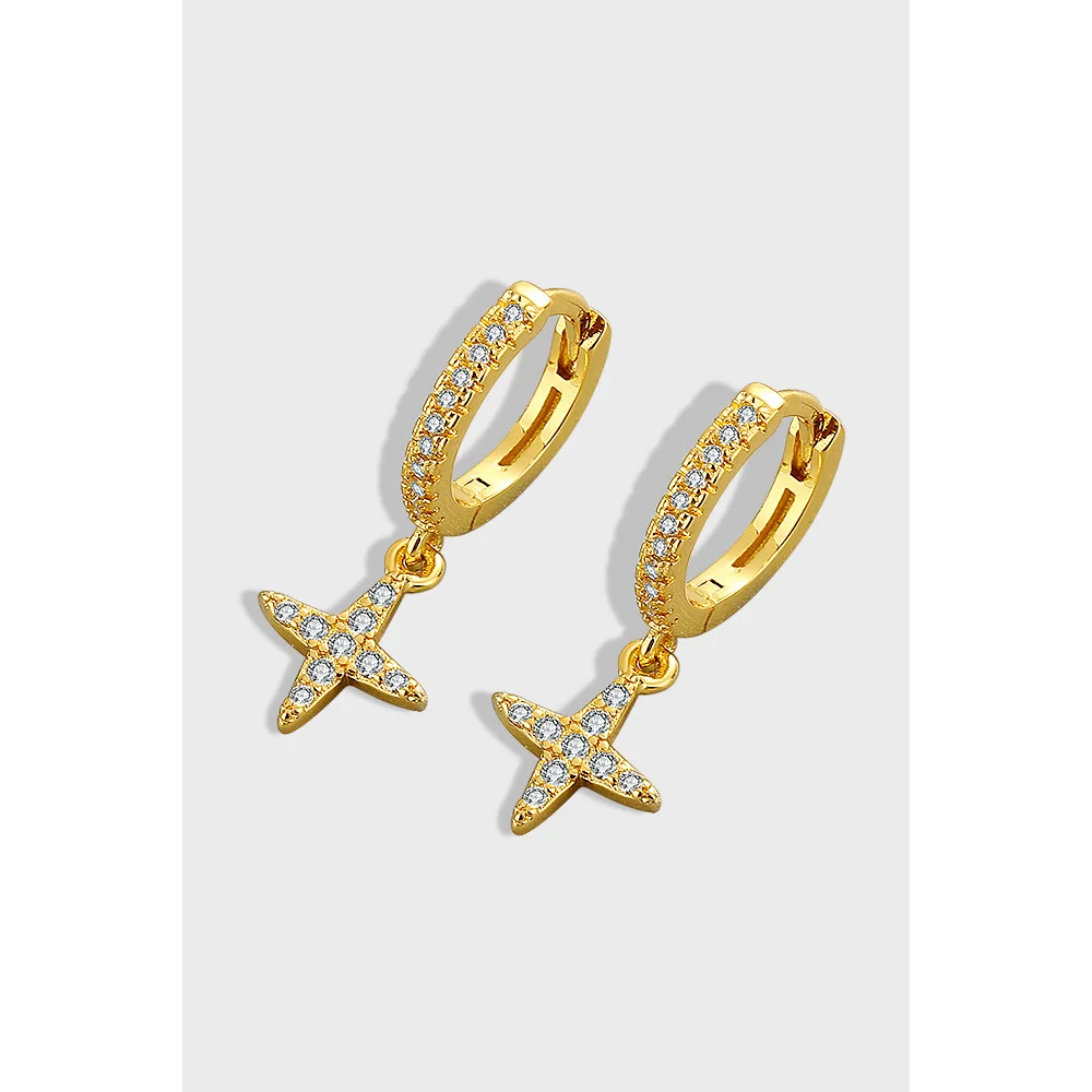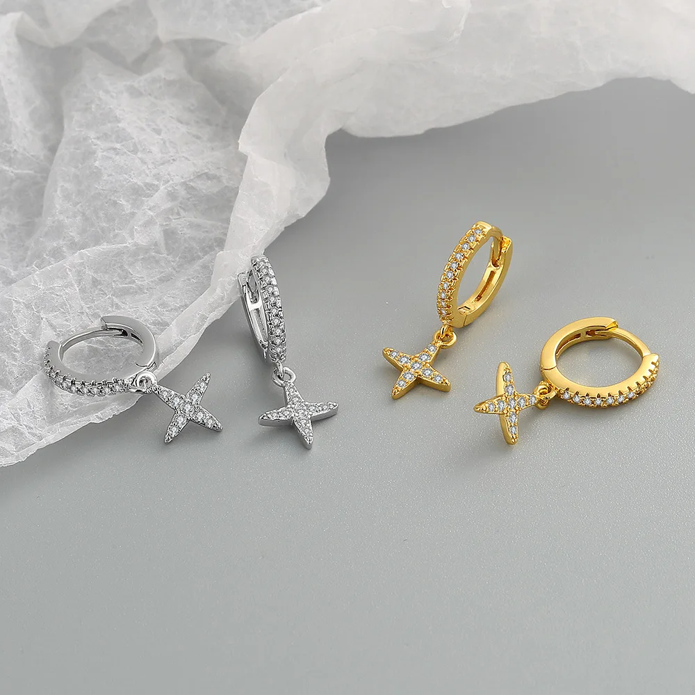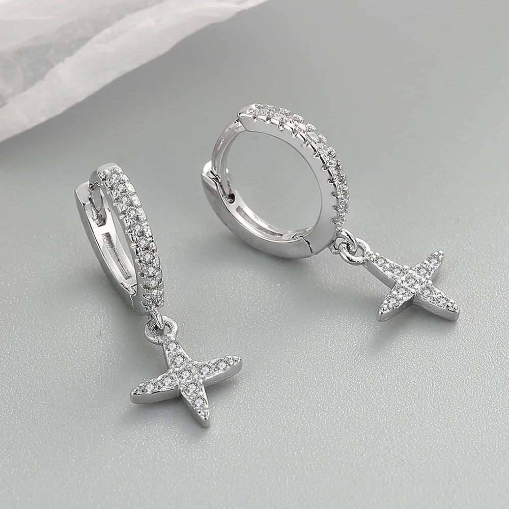 Product Name: 2025 Trendy Zircon Cross Hoop Earrings Women’s Simple Fashion Gold Silver Hug Jewelry Promotional Business Gifts