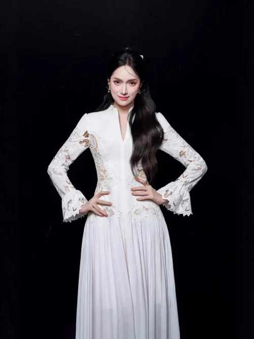 Product Name: 2025 Vintage Casual Sexy Flare Sleeve Lace Long Dress New Temptation Empire Front Breathable Hollow Design for Spring Summer