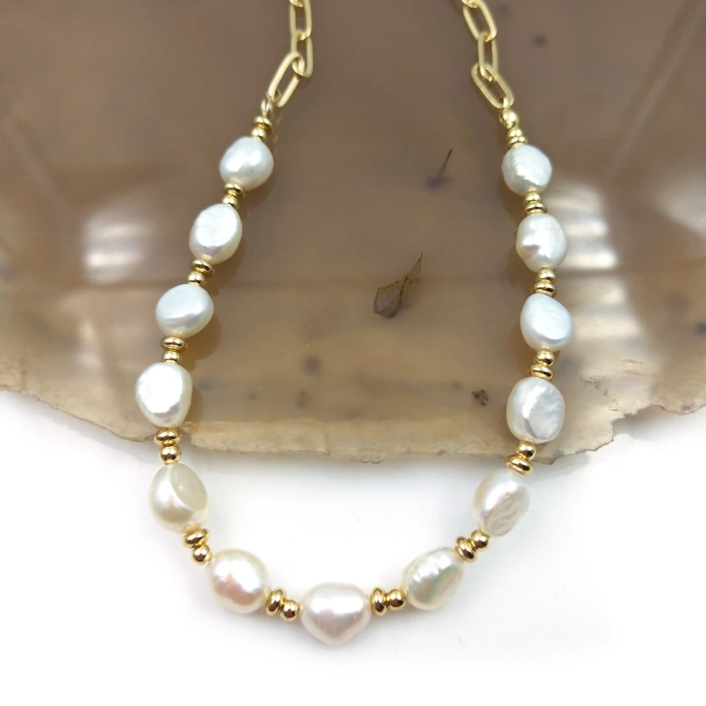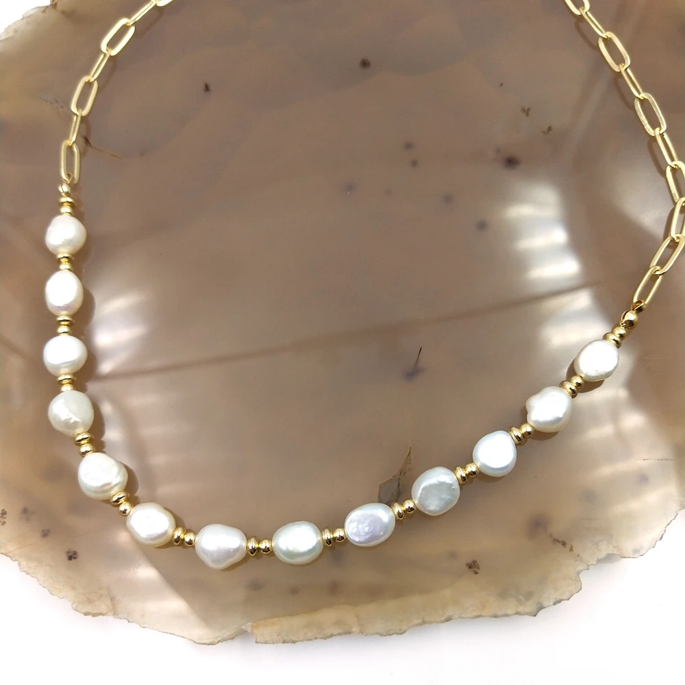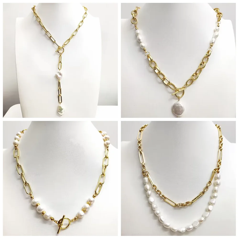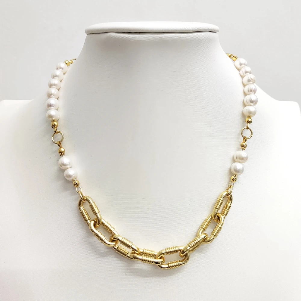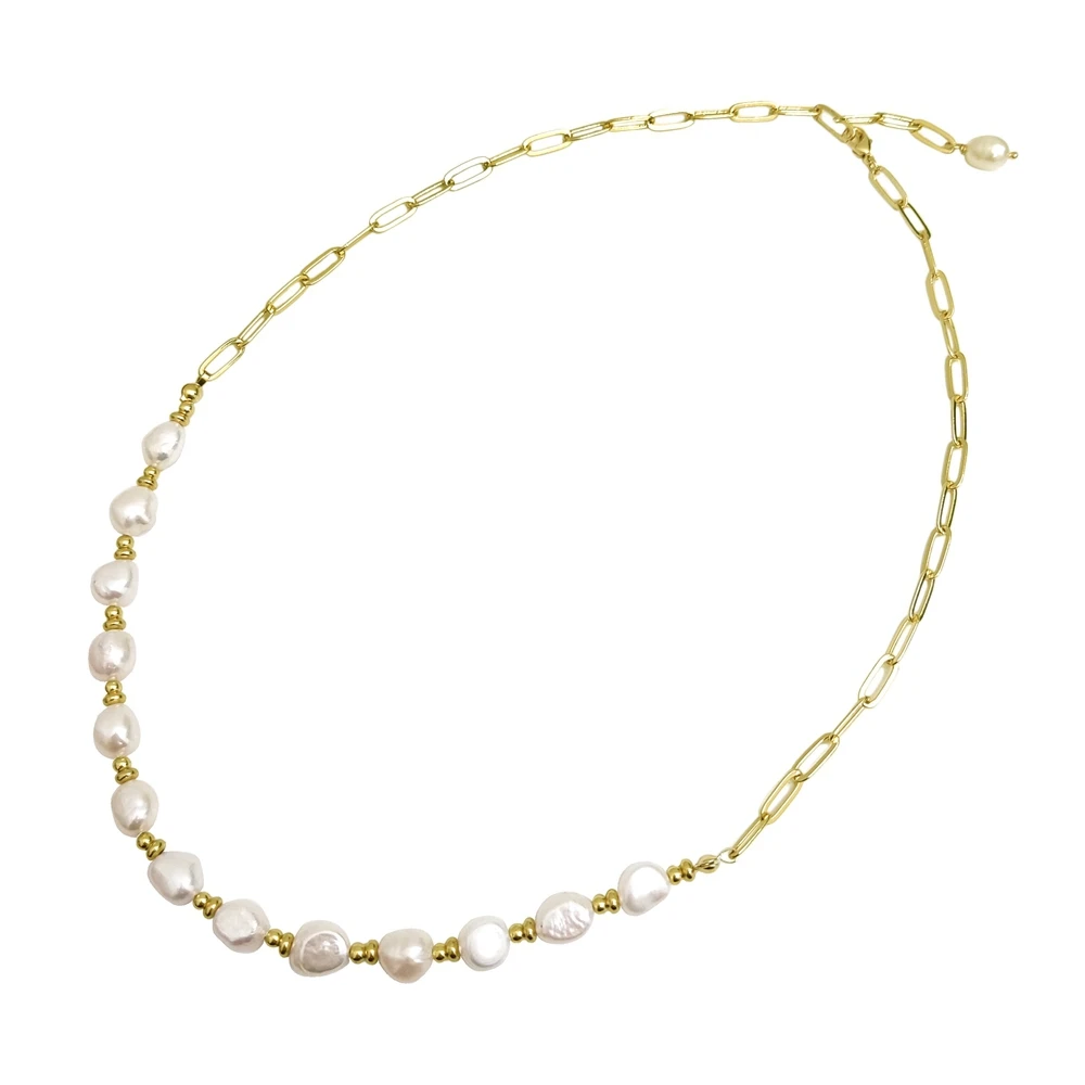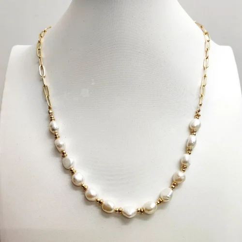 Product Name: 21.5 Inch Oval Paperclip Chain Freshwater Pearl Chokers Necklaces Stainless Steel Gold Plated Beads Necklace for Women