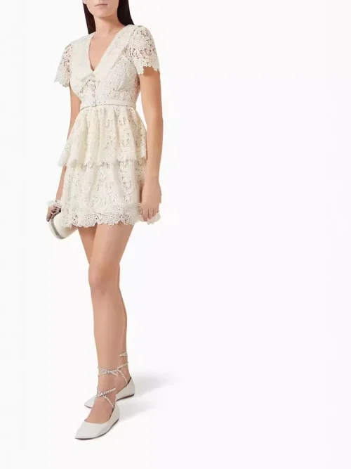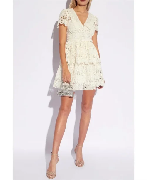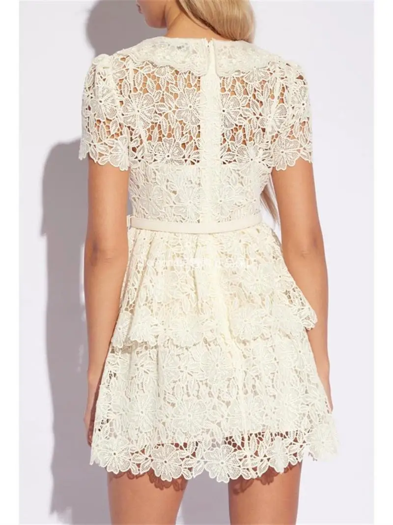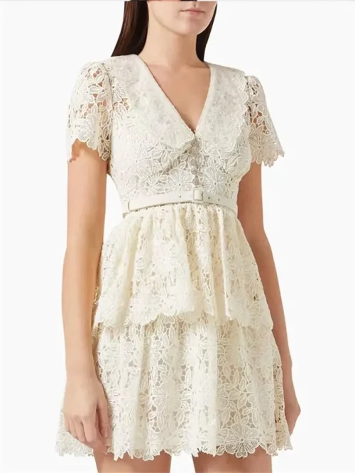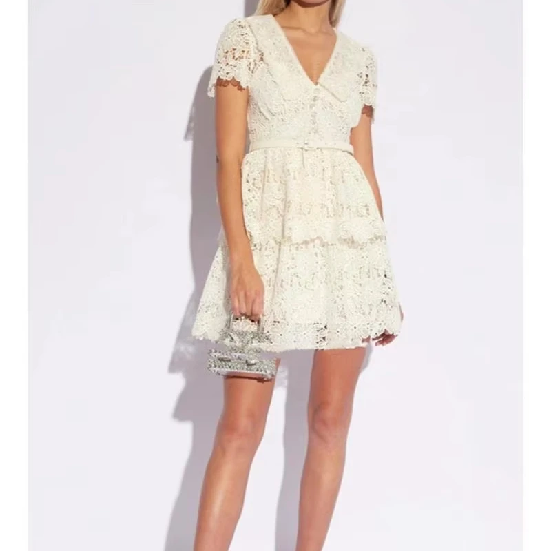 24 Summer British Fashion Brand Sweet Lady Temperamental Water Soluble Lace Lapel Cake Dress in Stock