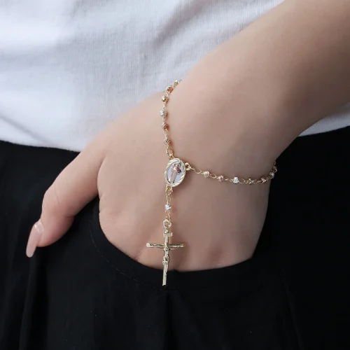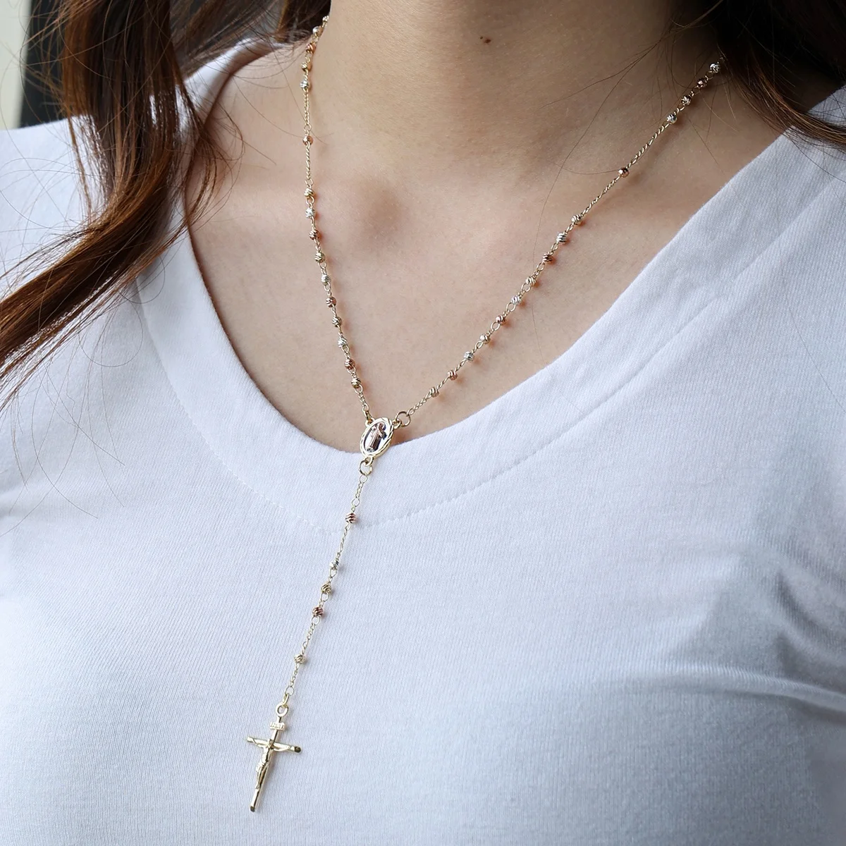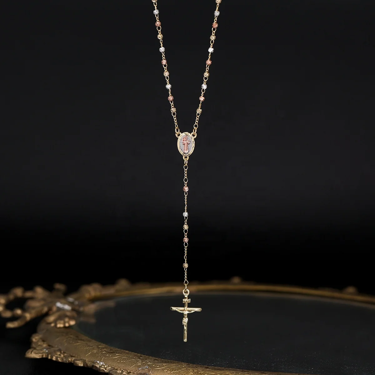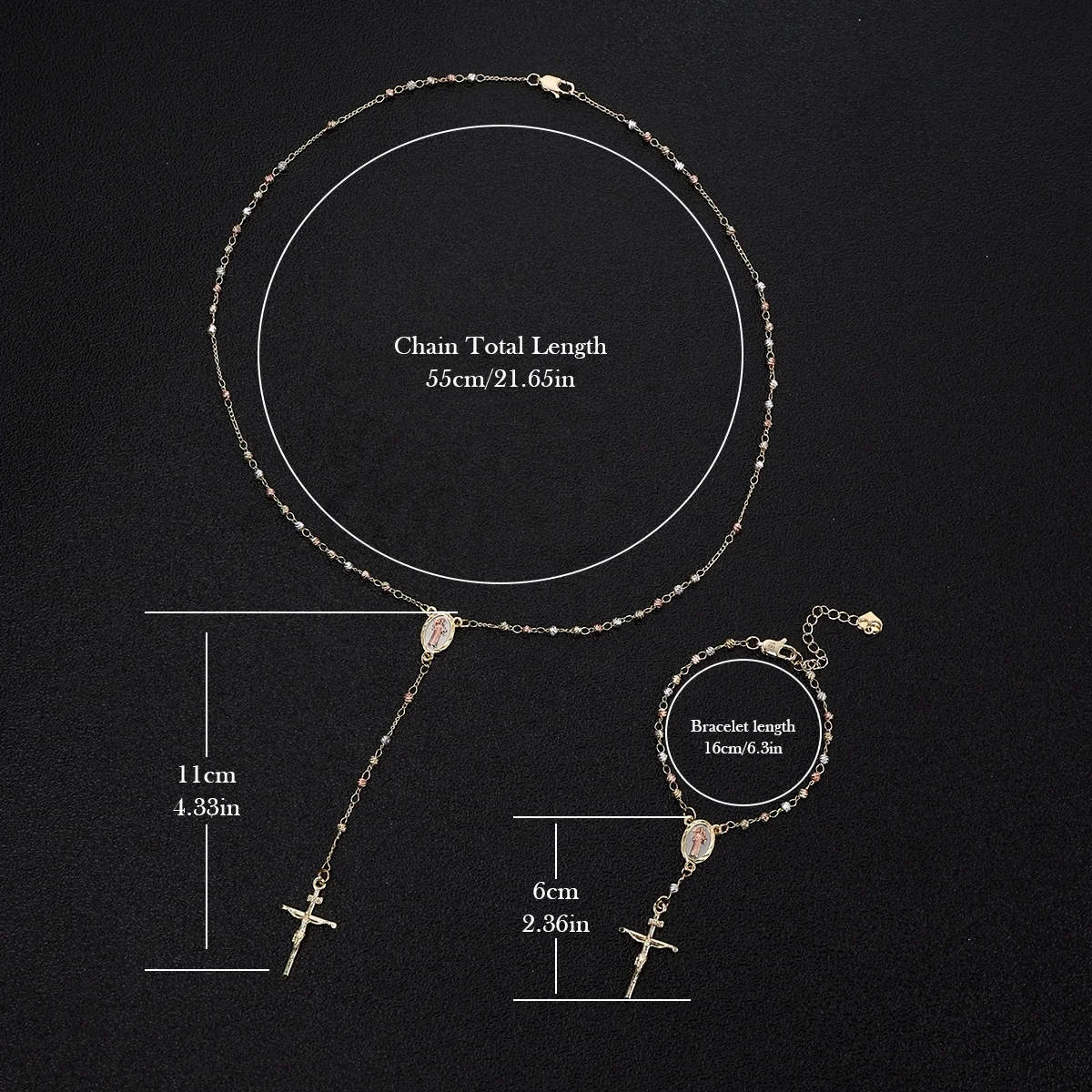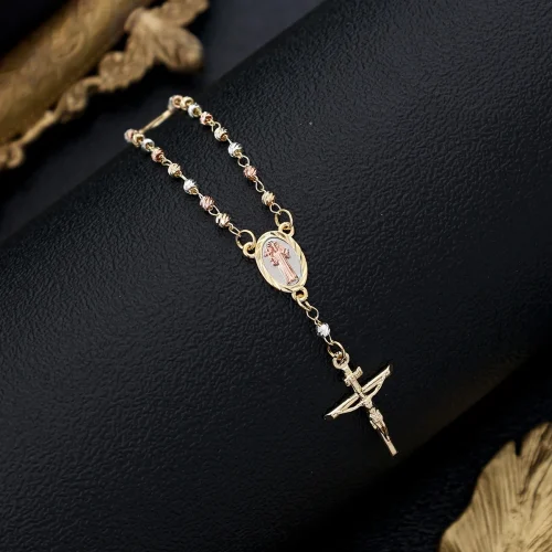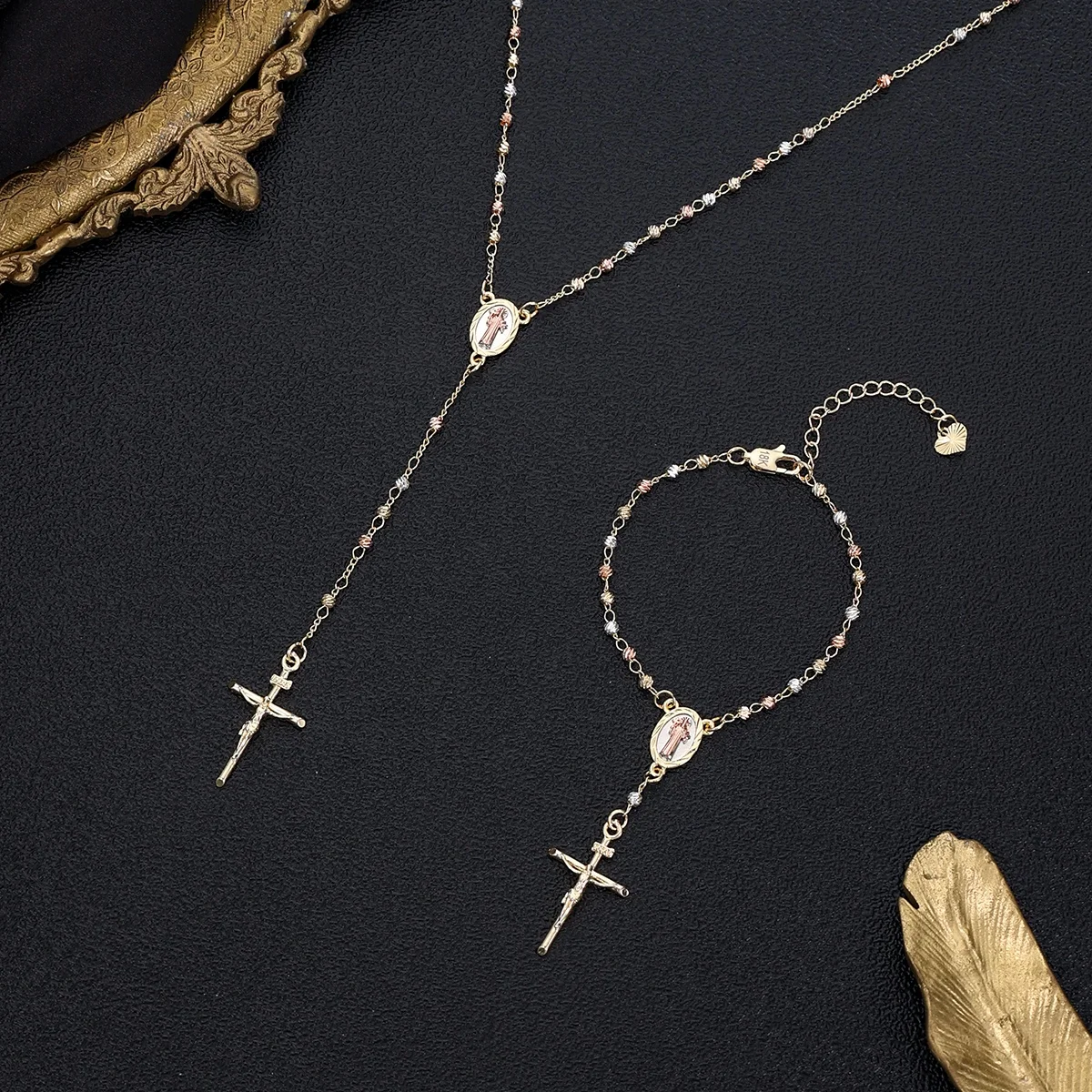 Product Name: 241195 Outlet 14k Tricolor Rosary Religious Jewelry St. Benedict Necklace Bracelet Set for Women