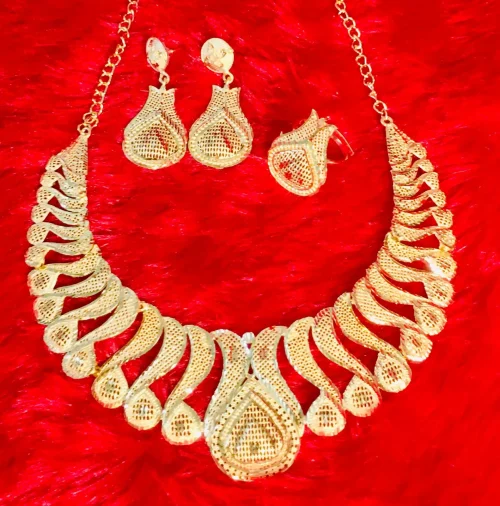 Product Name: 24K Gold Dubai Vintage Fashion Jewelry Set Classic Copper Anniversary Gift Including Necklace Earrings Bangles for USA Turkey