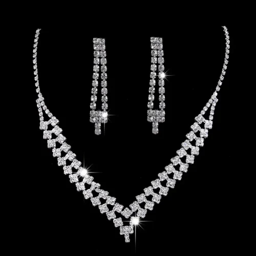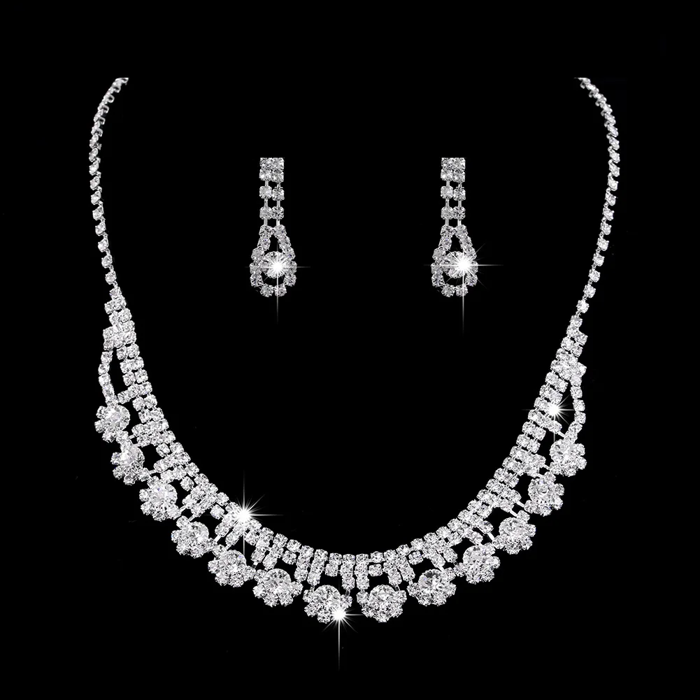 Product Name: 2pcs/Set Luxury Jewelry Set Full Diamond Multilayer Necklace Women Bling Earrings Shiny Tassels Bridal Wedding Fashion Jewelry