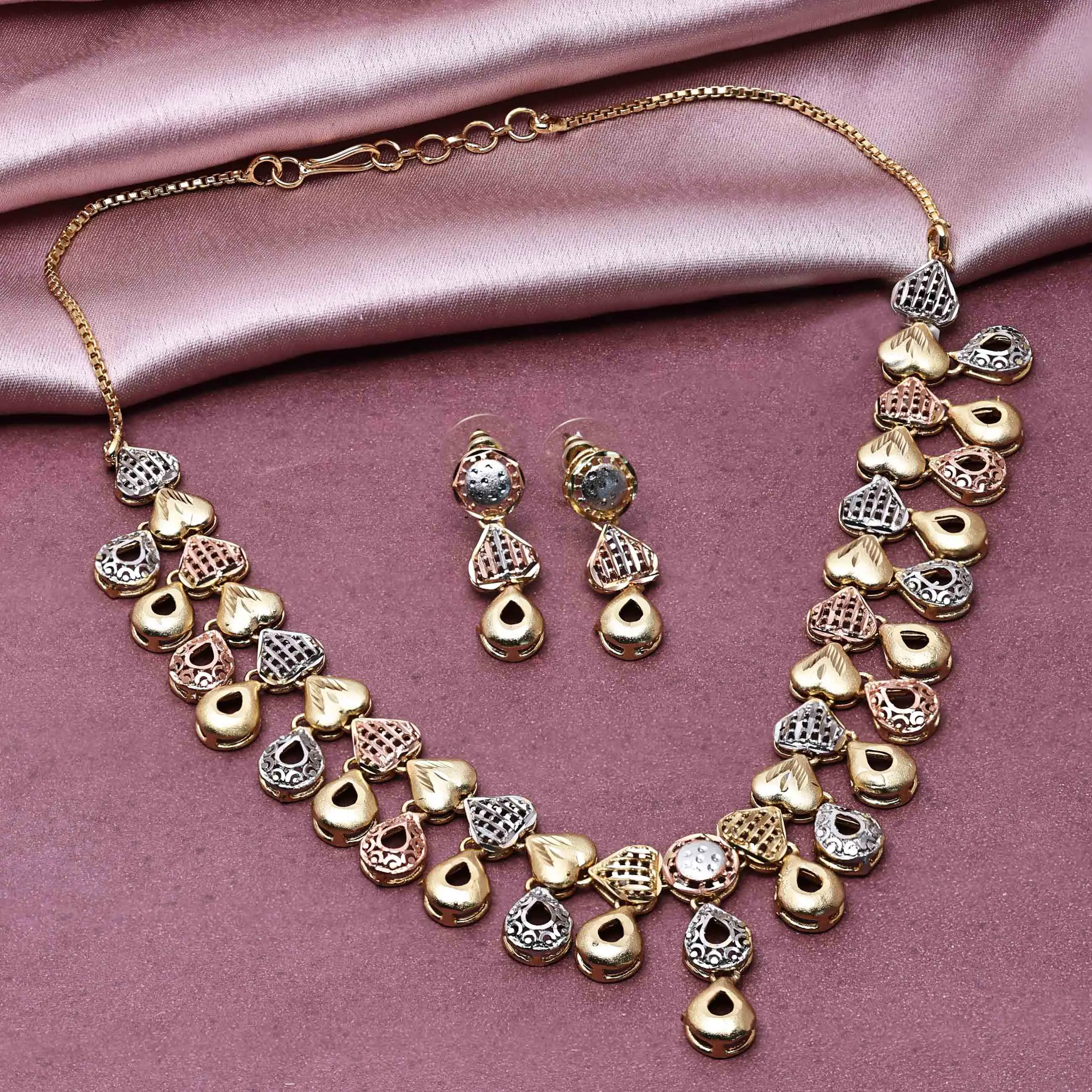 3 Tone Gold Filled Forming Jewelry Set, Modern Turkey Jewelry Set, Luxury Jewelry, Fashion Jewelry, Tri Color Brass Jewelry Set.