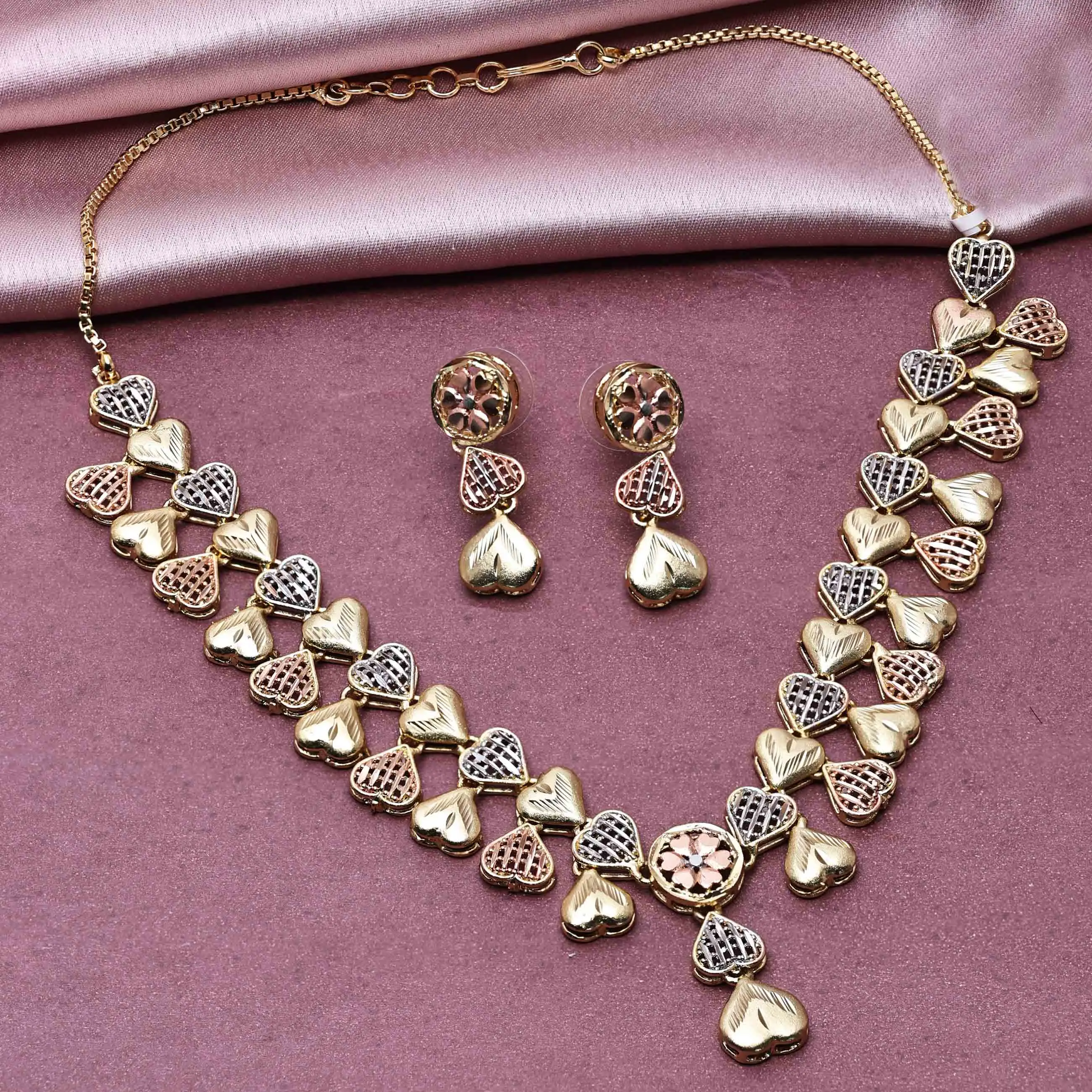 Product Name: 3 Tone Gold Forming Jewelry Set, Indo-Western Turkey Jewelry Set, Fashion Jewelry, Luxury Jewelry, Tri Color Brass Necklaces Set