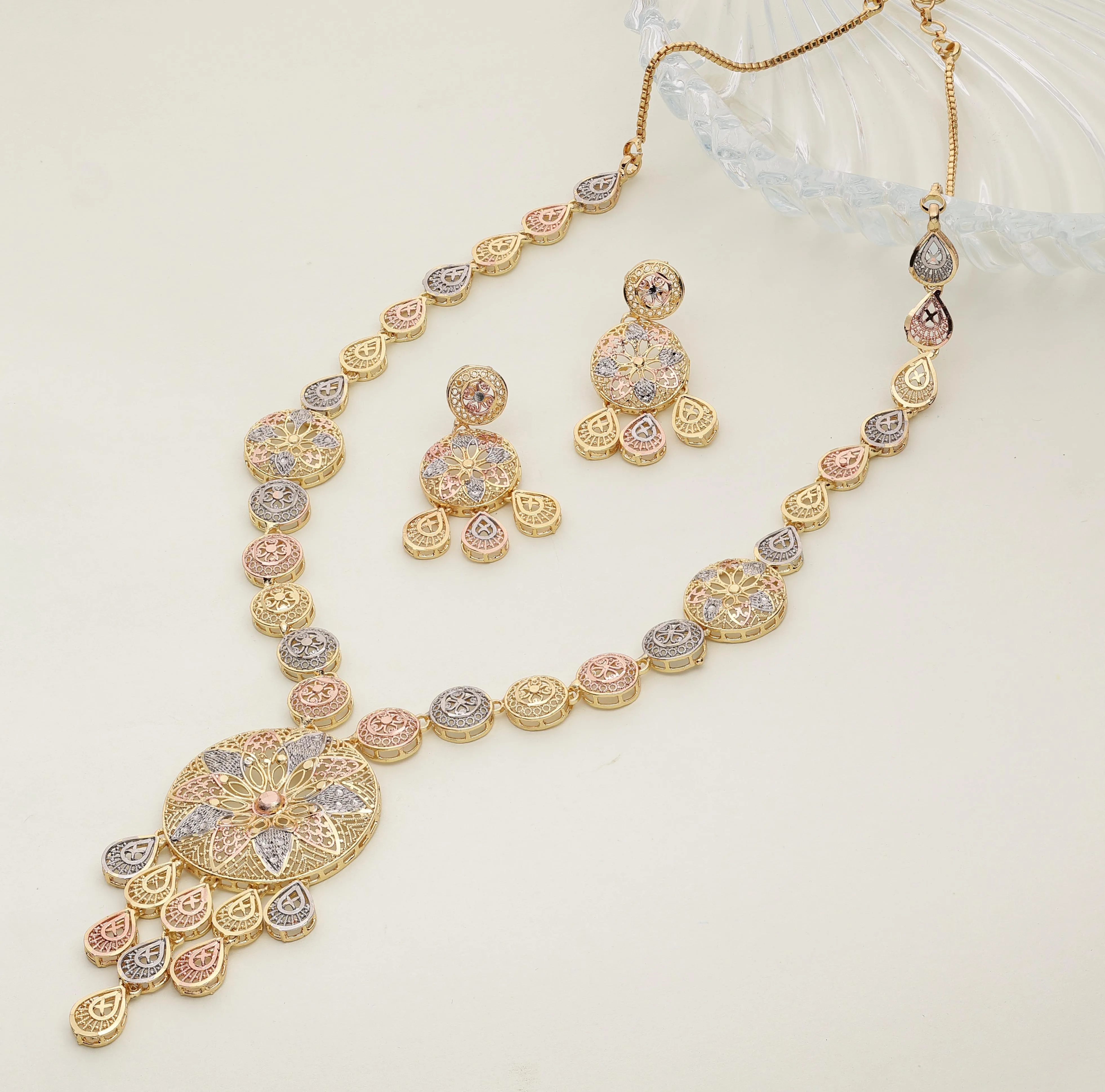 Product Name: 3 Tone Plated Forming Jewelry Set, Turkey 3 Tone Plated Necklaces, Luxury Artificial Jewelry, Fashion Jewelry, Tri Color