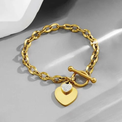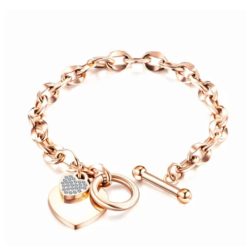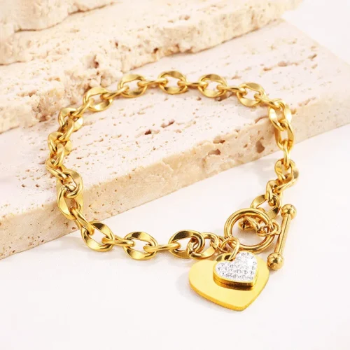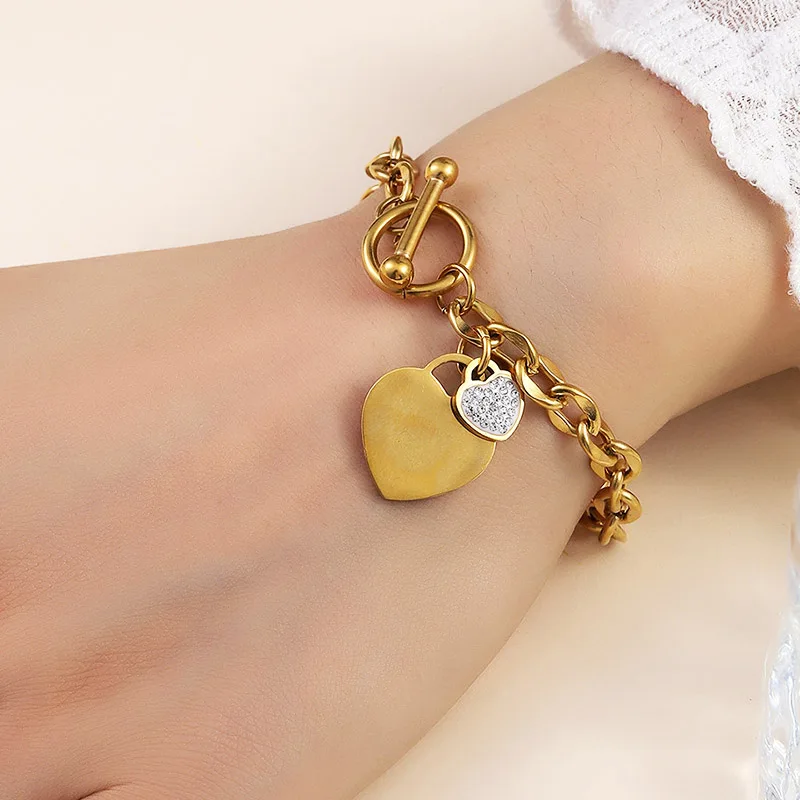 Product Name: 316 Stainless Steel Gold Plated Double Heart Charm Bracelets for Women Bohemia Rhinestone Chain Bracelet Jewelry