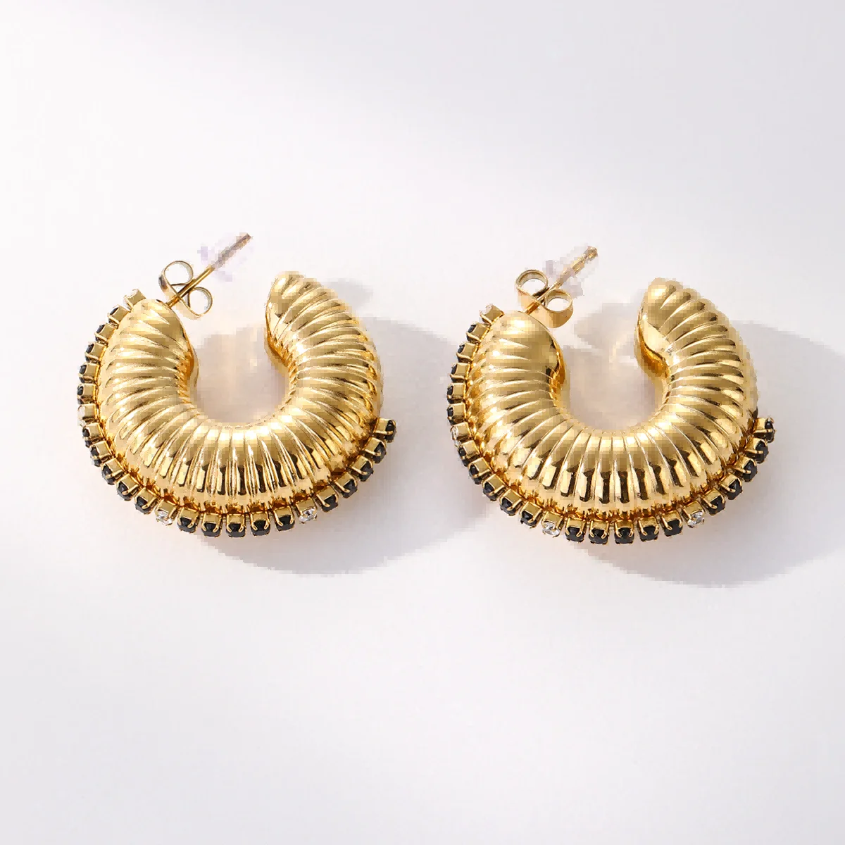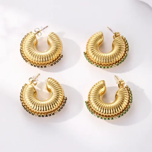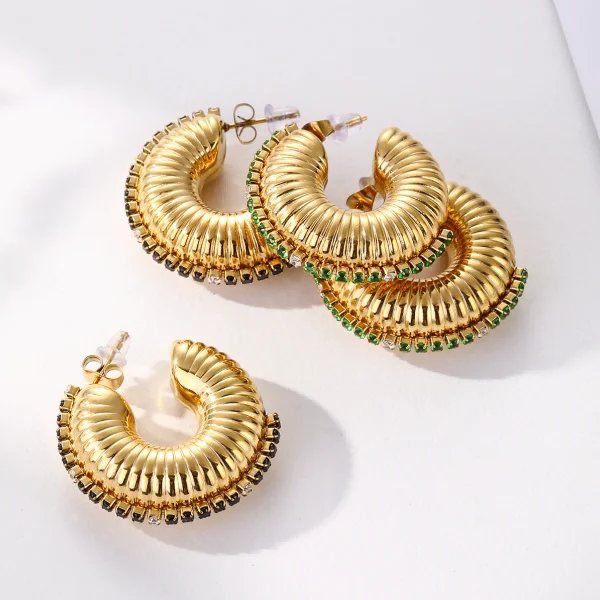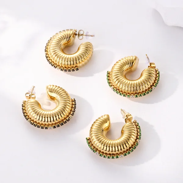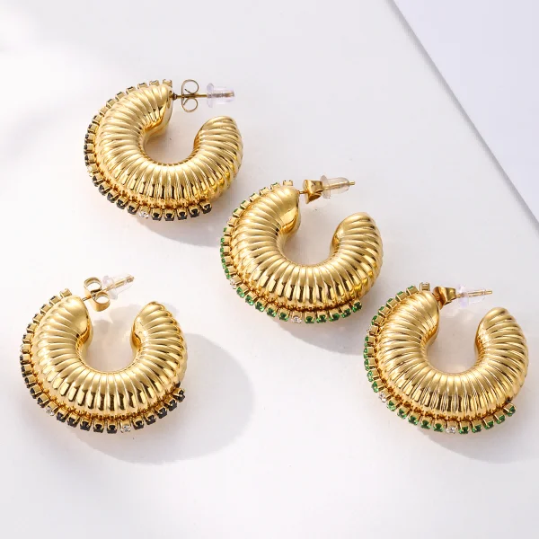 Product Name: 316l Steel Waterproof Jewelry Hoop Chunky C Shape Zircon Earrings Statement Gold Plated Jewelry Stainless Steel Ear Cuff