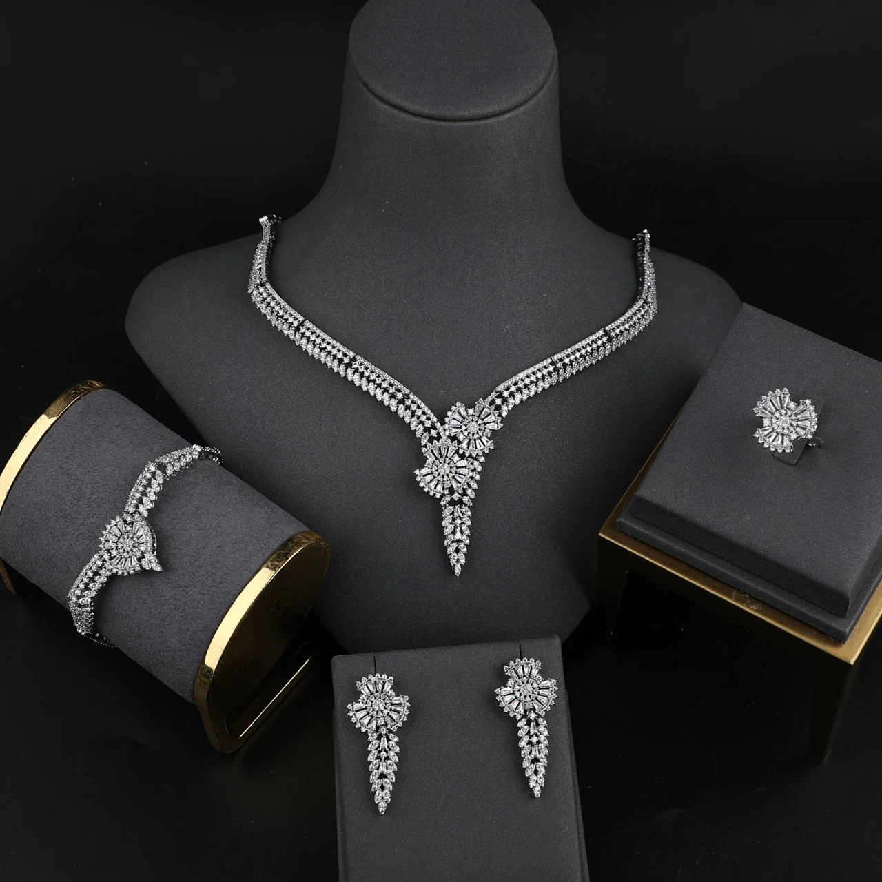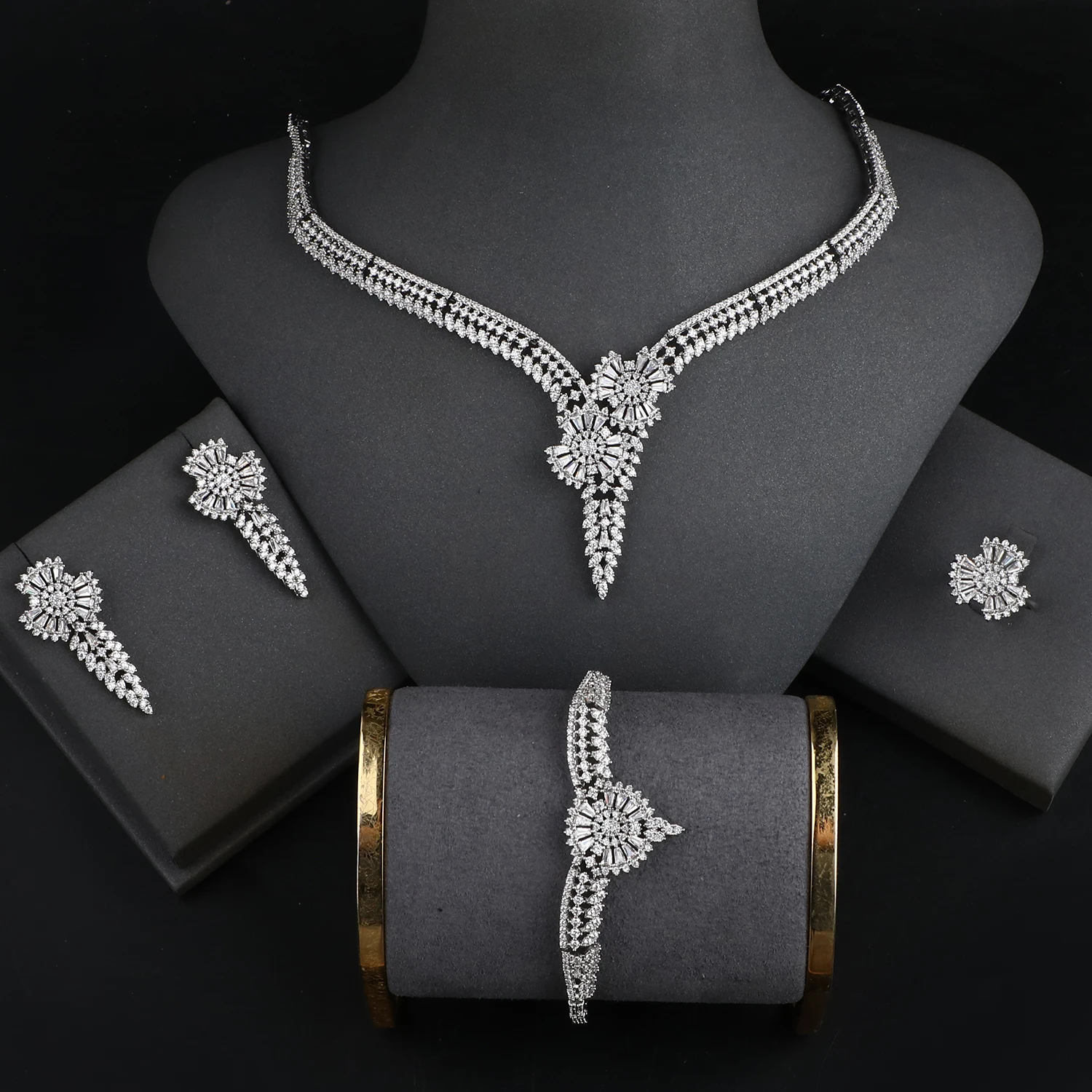 Product Name: 4pcs Wedding Jewellery Sets Women Fashion Luxury Exquisite Zircon Necklace Bracelet Earrings Ring Wedding Bridal Jewelry Set