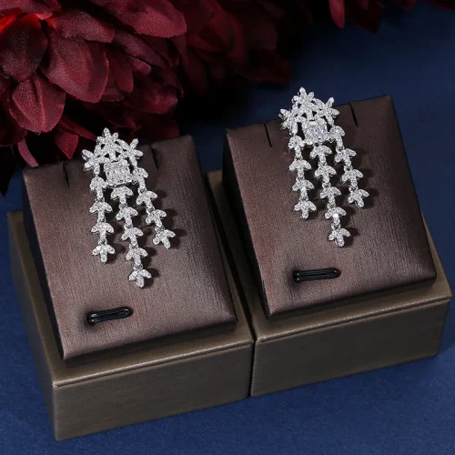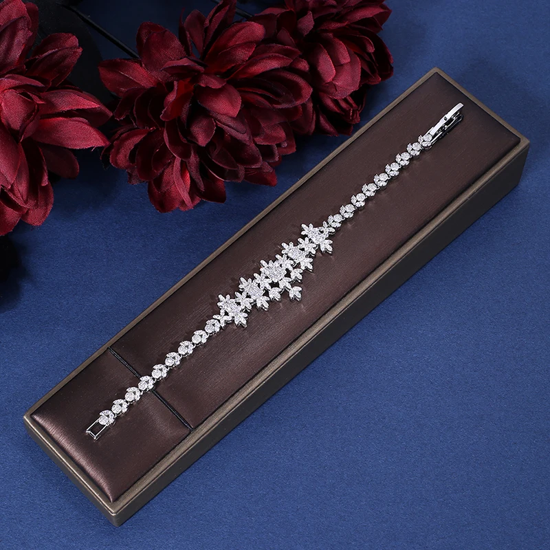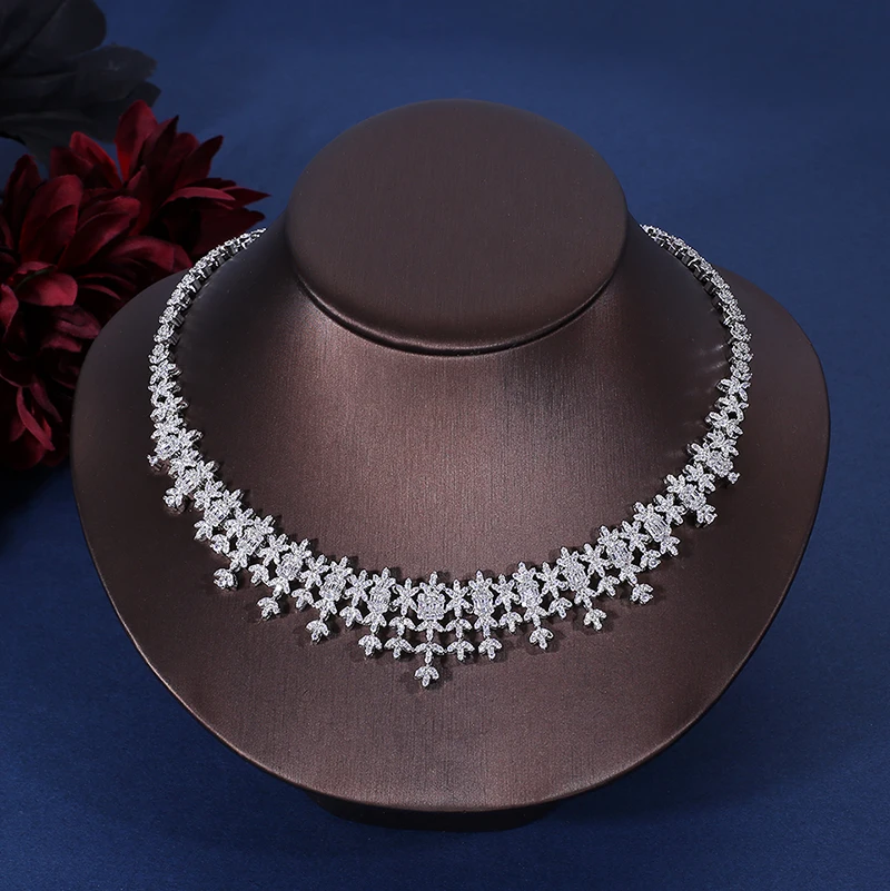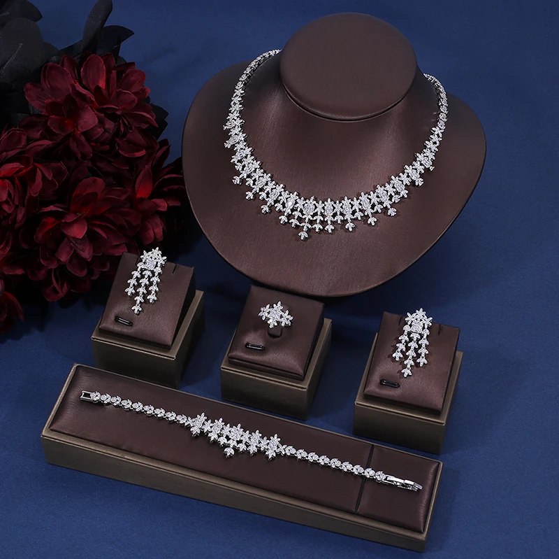 4Pcs/set Gold Zircon Necklace Bracelet Ring Earrings Fashion Jewelry Women BridalZircon Crystal Earrings Necklace Set