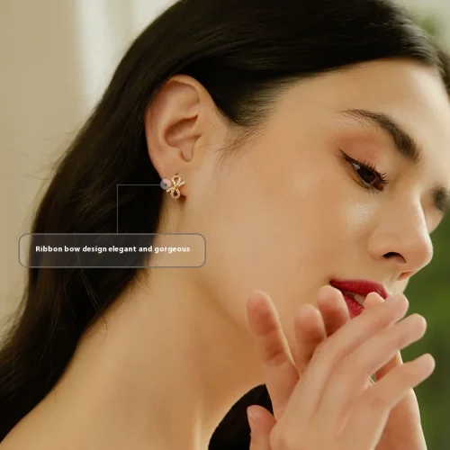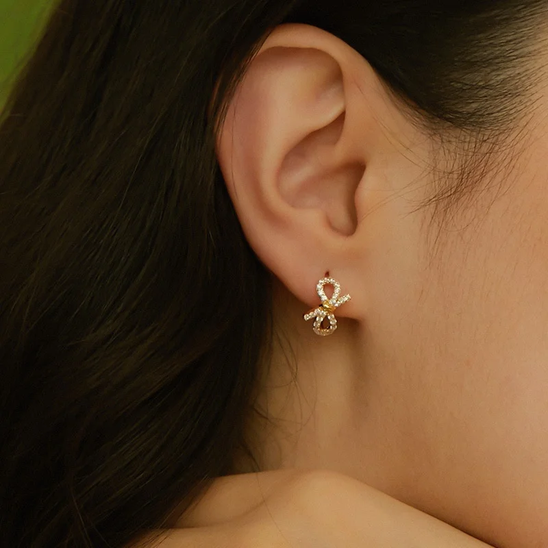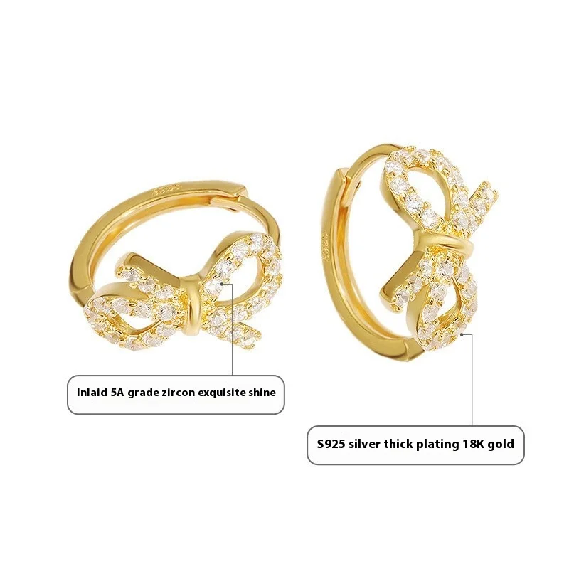 Product Name: 925 Sterling Silver Female Bow Earrings Zircon High Sensitivity Huggie Earrings Temperament Drop Earrings Type