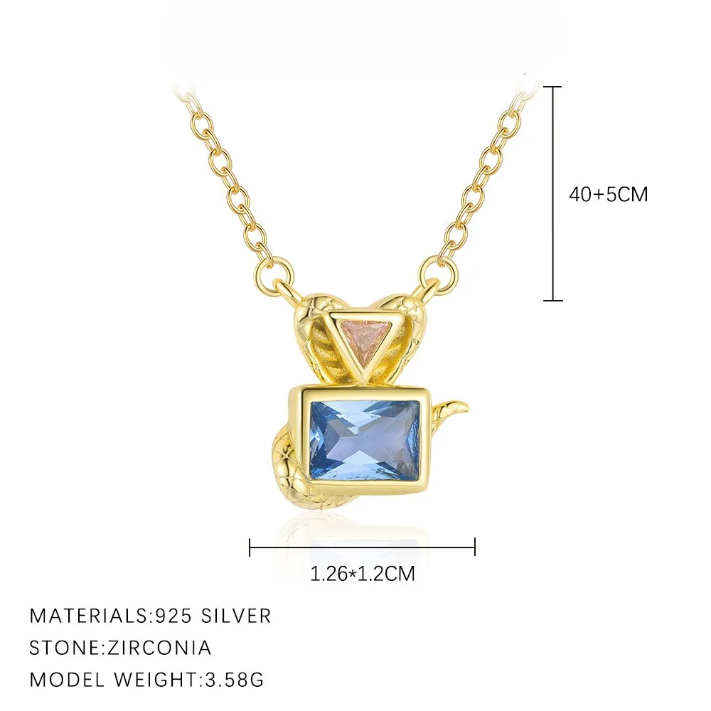 Product Name: 925 Sterling Silver Pink Zircon Snake Necklace 18K Gold Plated Fine Pendant Chain Necklace for Women Fashion Jewelry