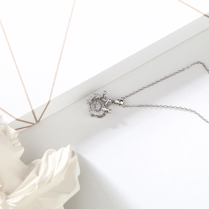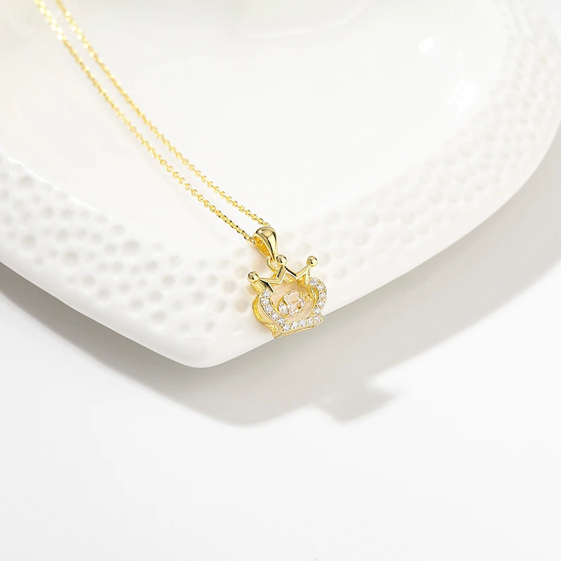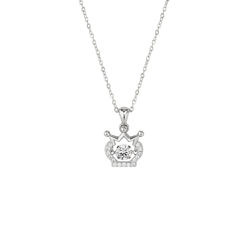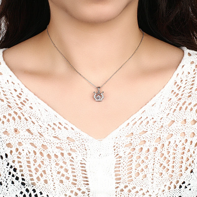 925 Sterling Silver Queen Crown Dancing Zircon Pendant Fashion Women’s Necklace Jewelry for Engagement Wedding Party