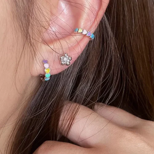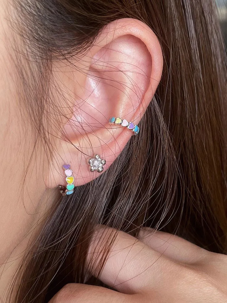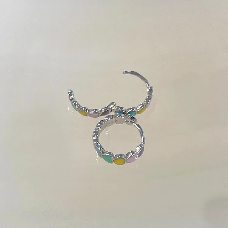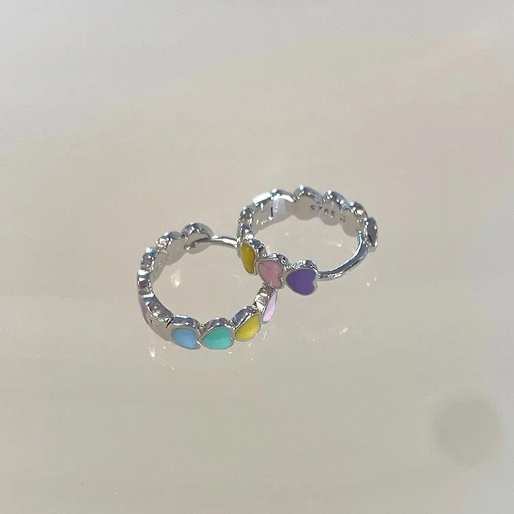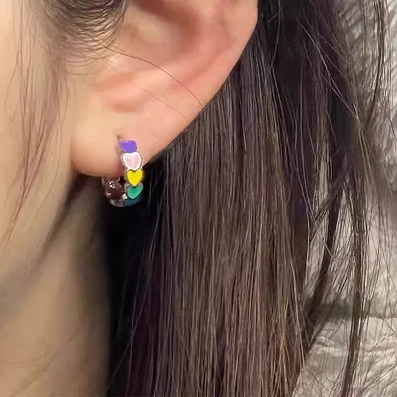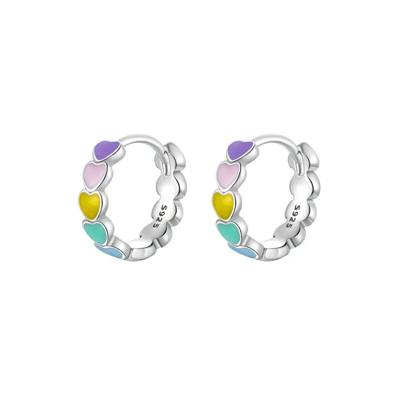 925 Sterling Silver Women Multicolor Enamel Heart Hoop Earrings Rainbow Trend Jewelry for Girl Gift