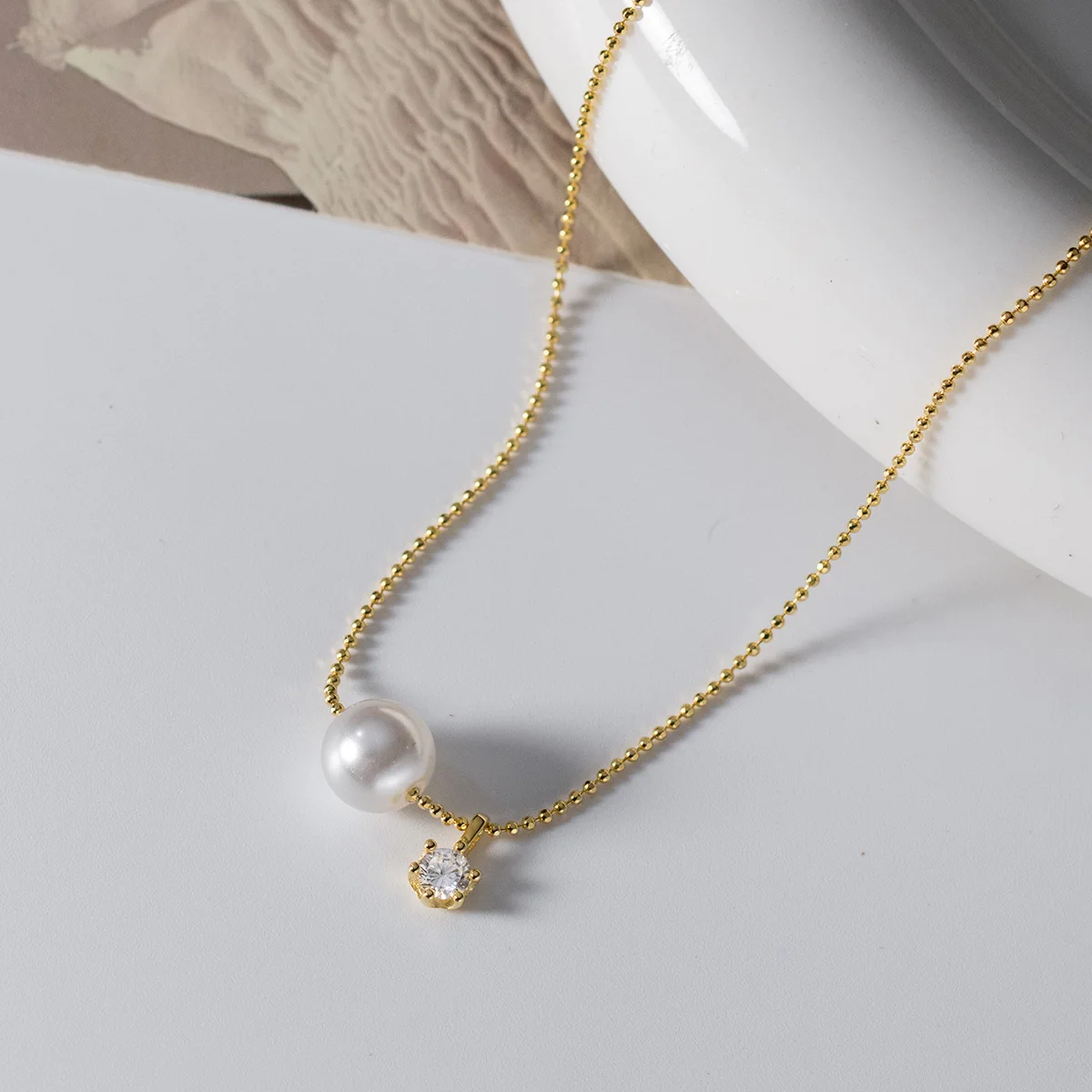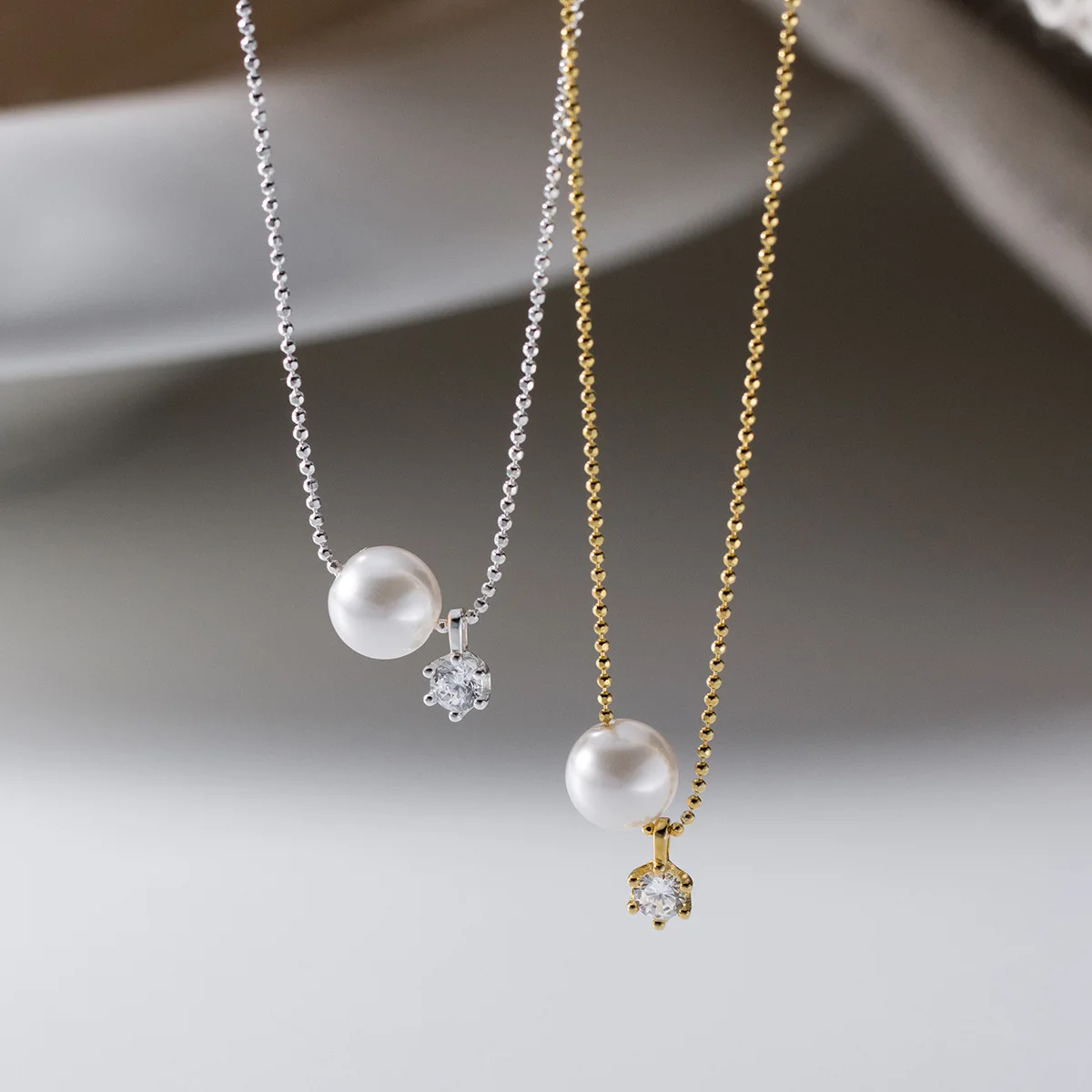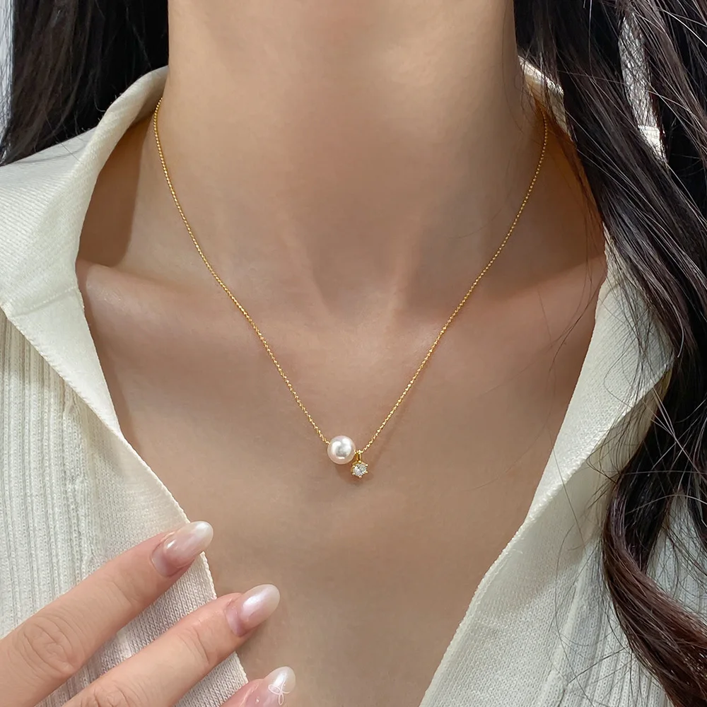 925 Sterling Silver Zircon and Pearl Pendant Clavicle Necklace for Women 925 Silver Collarbone Chain Necklace Jewelry