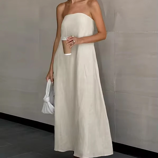 9544-TD-Dress Strapless Invisible Zipper Tube Slip Maxi Dress Vacation Elegant Date Wear