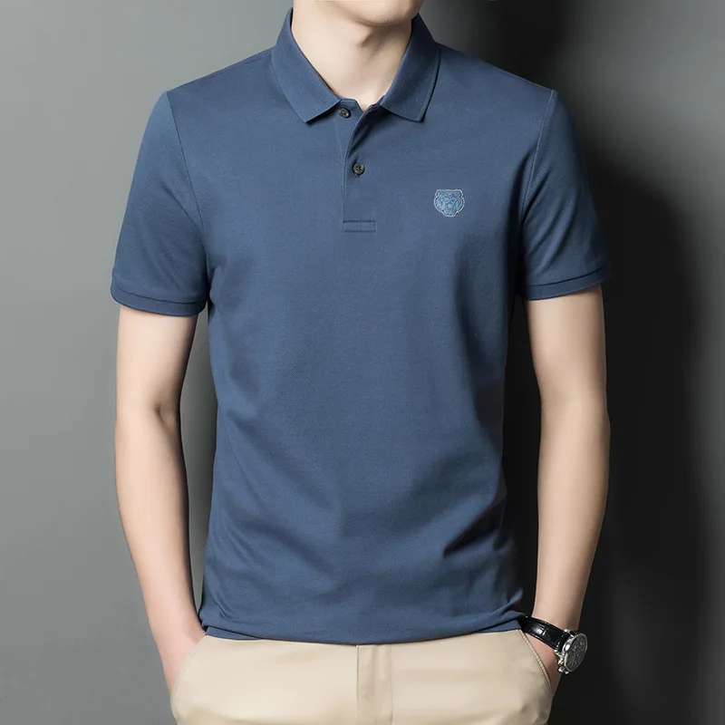9912-T- Lapel Casual Men’s Polo Shirt Half-Sleeve Group Dress High-End Slim Cotton Breathable Short-Sleeved Shirt