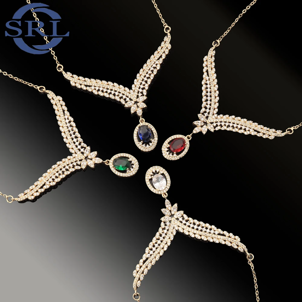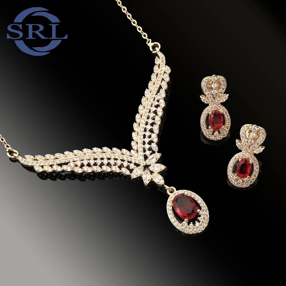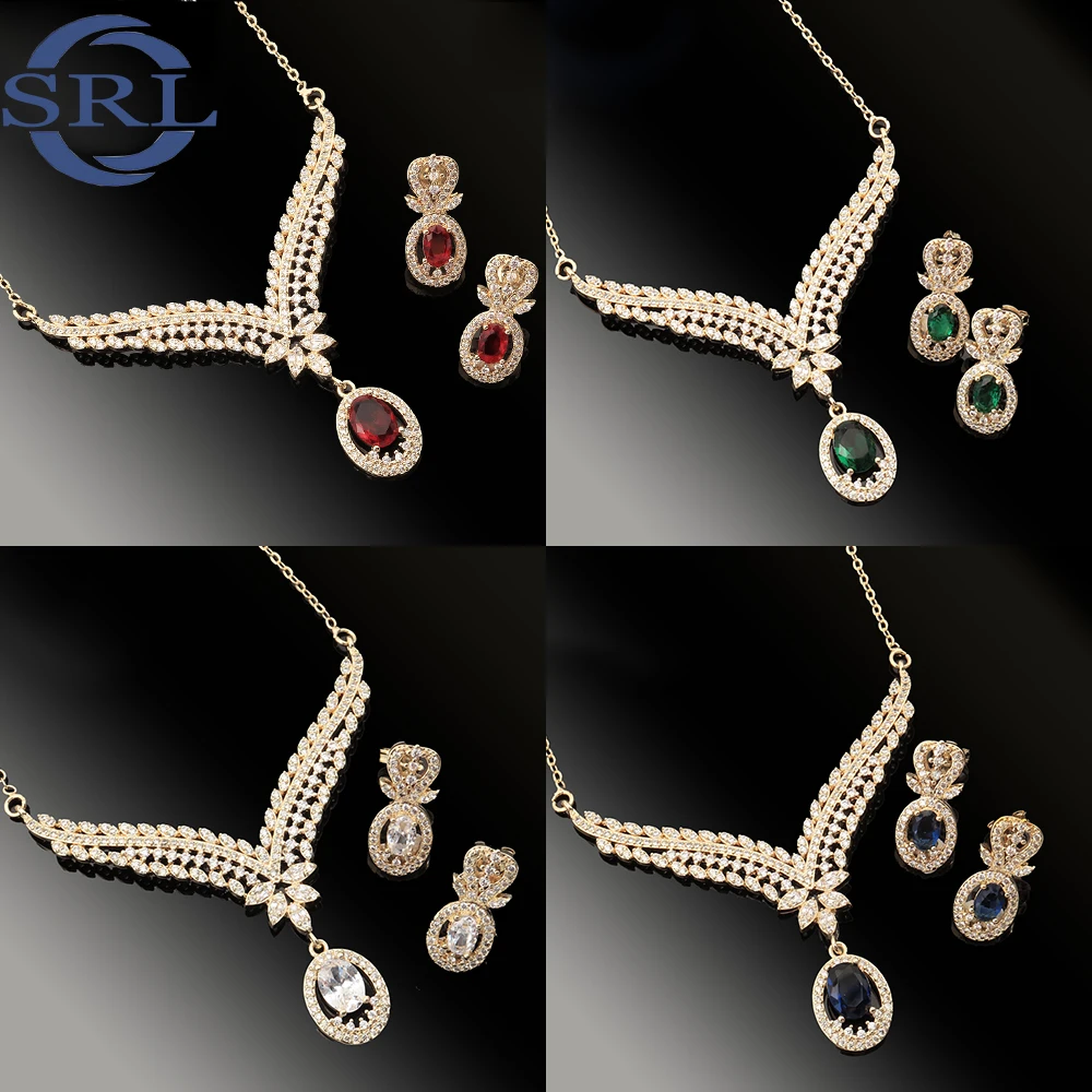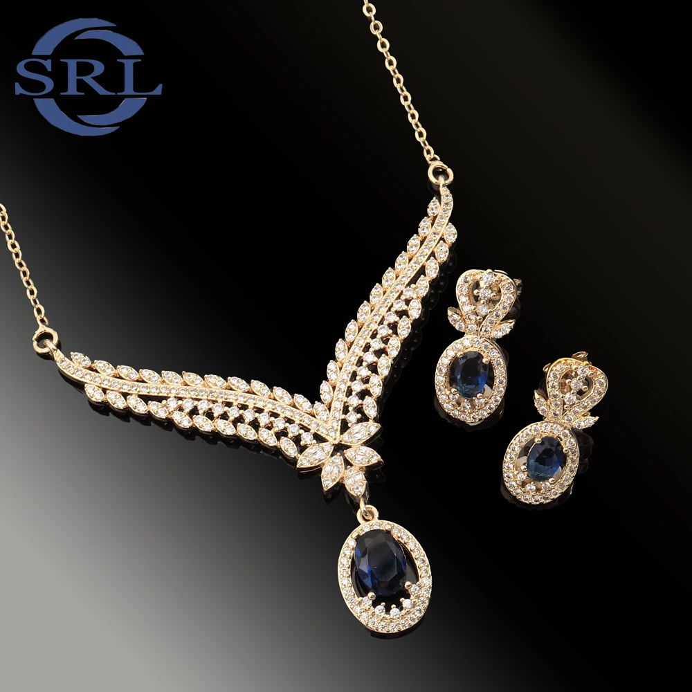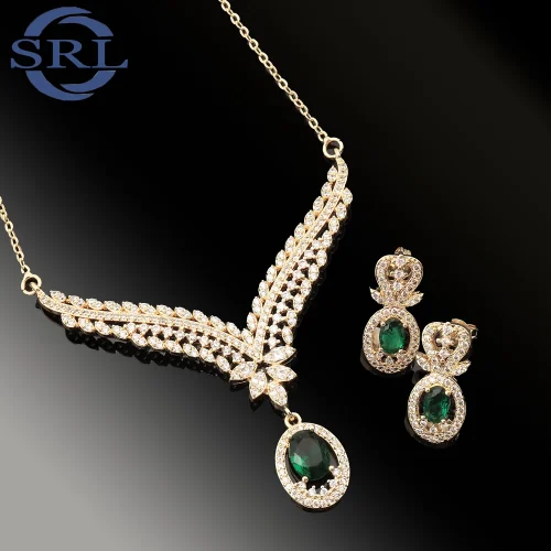 A New Fashion 14K18K Electroplated Gold Bridal Evening Dress with Teardrop Gemstone Earrings and Necklace Set