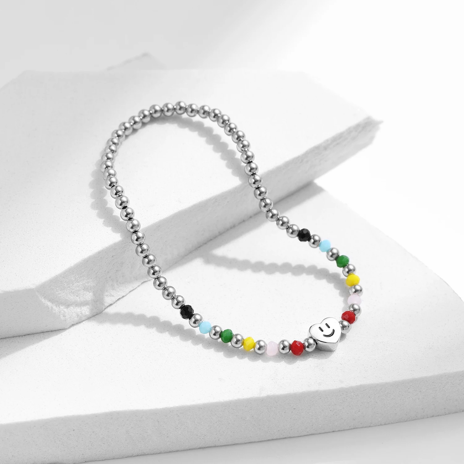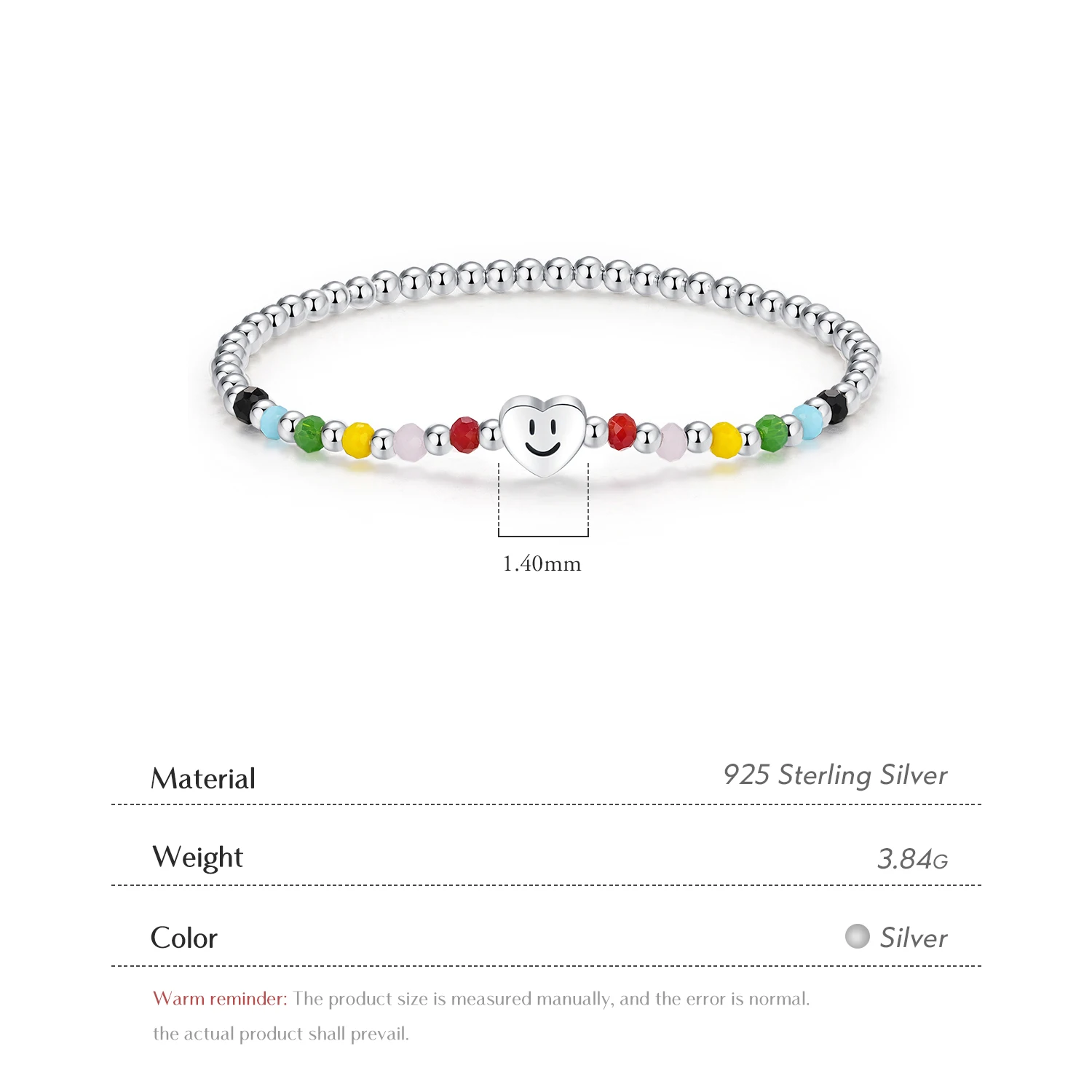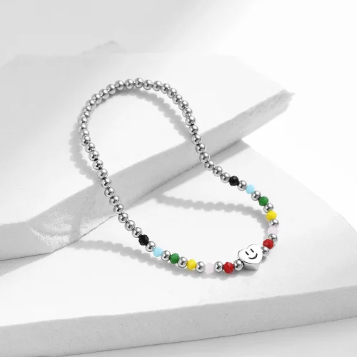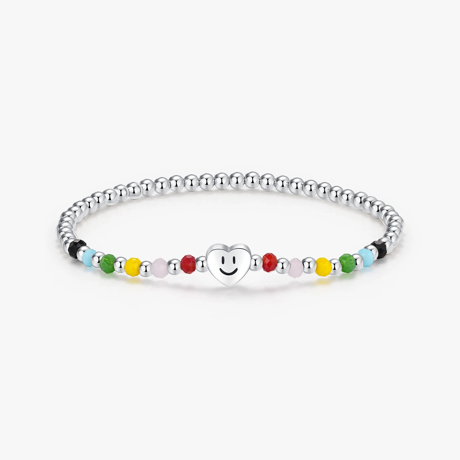 Product Name: Adjustable Elastic Bracelets for Women Fine Jewelry 925 Sterling Silver Colorful Heart Love Smile Basic Beads Bracelet