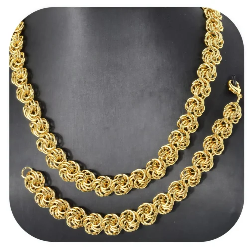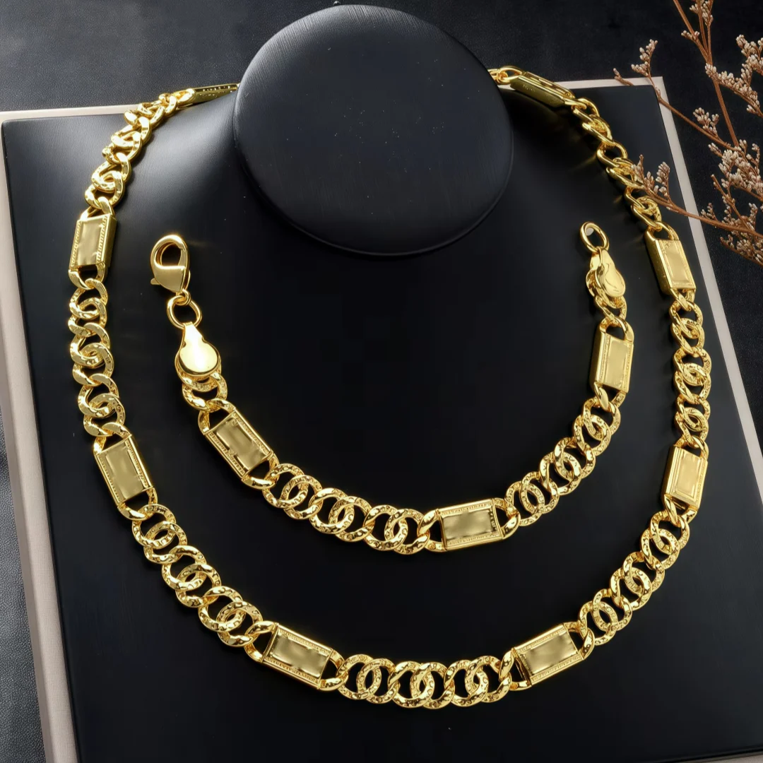 Product Name: Adjustable Gold Plated Hip Hop Jewelry Set Women Men Stainless Steel Chain Bracelet Necklace Jewelry Set High Quality