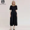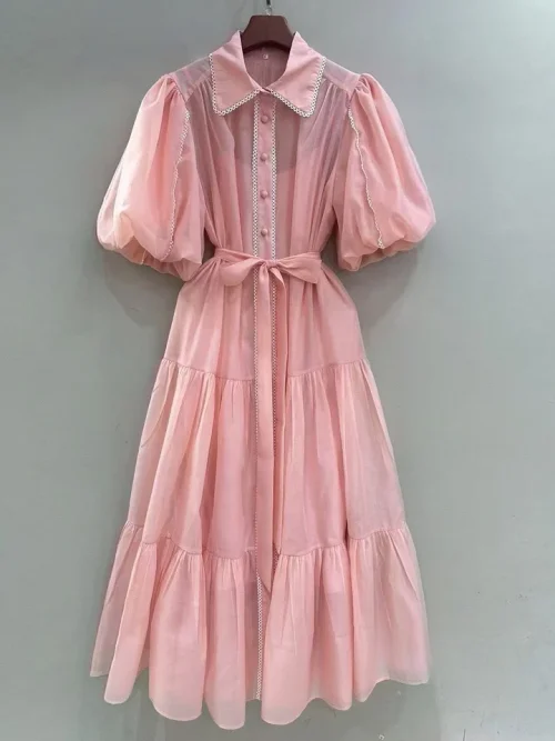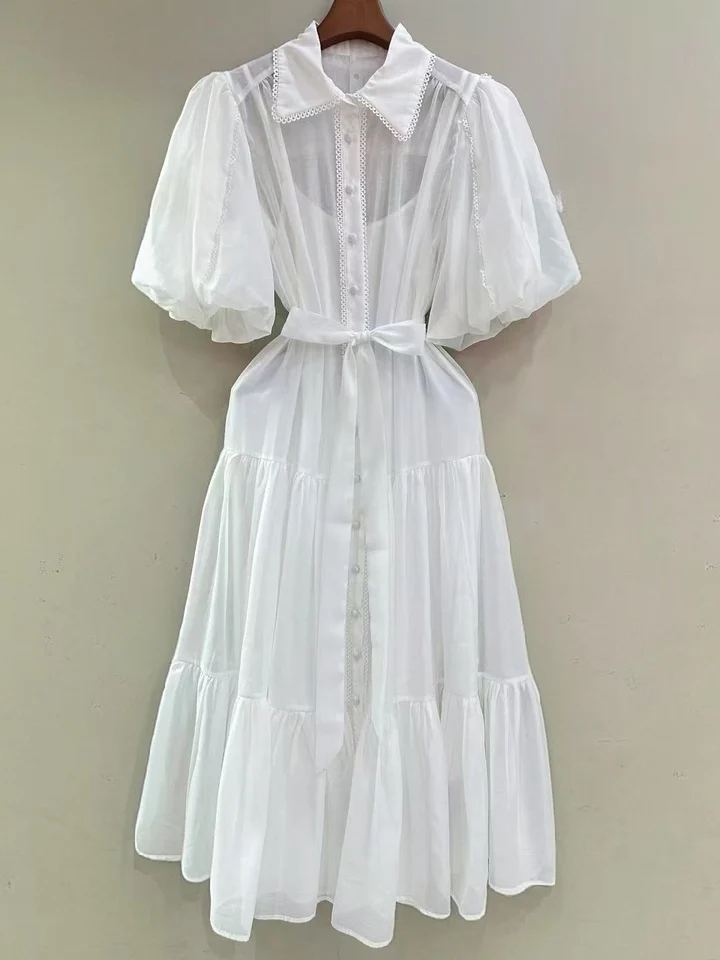 Product Name: AELESEEN Women’s Casual Midi Dress for Spring Summer Vintage Retro Party Fashion Design Lace Patchwork Puff Natural Loose