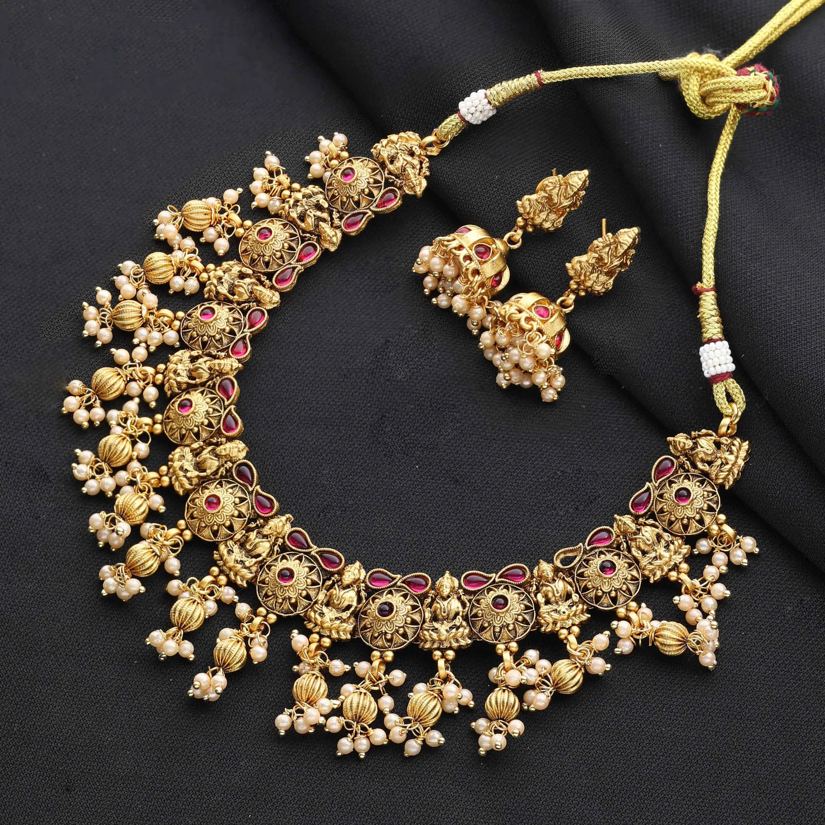 Product Name: Antique Matte Plated Brass Jewelry Fashion Necklaces & Chains With Pearls for Festivals and Temples Direct Export From India